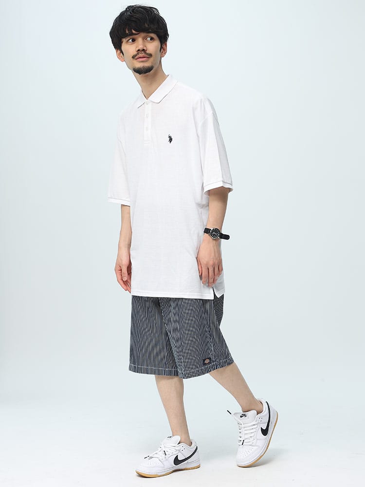 フロントのロゴ刺繍がポイントになったU.S. POLO ASSN.の半袖 ポロシャツ。幅広に設計されたオーバーサイズシルエット。肩部分がストンと落ちるようなシルエットなので、ゆったりとラフな着こなしを楽しめます。フロント左胸にブランドロゴ刺繍。裾サイドにスリット入り。肌触りの良いコットン配合生地を使用し、着心地抜群な一枚。カジュアルさと品の良さを持ったデザインで大人のカジュアルスタイルにおすすめのアイテムです。
