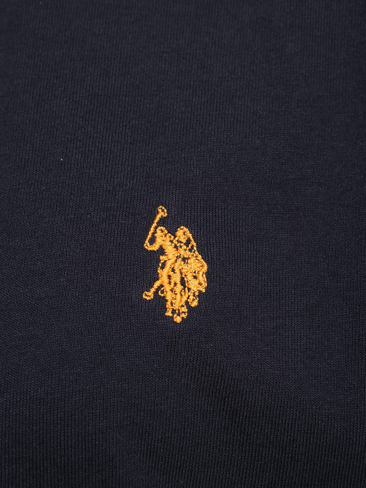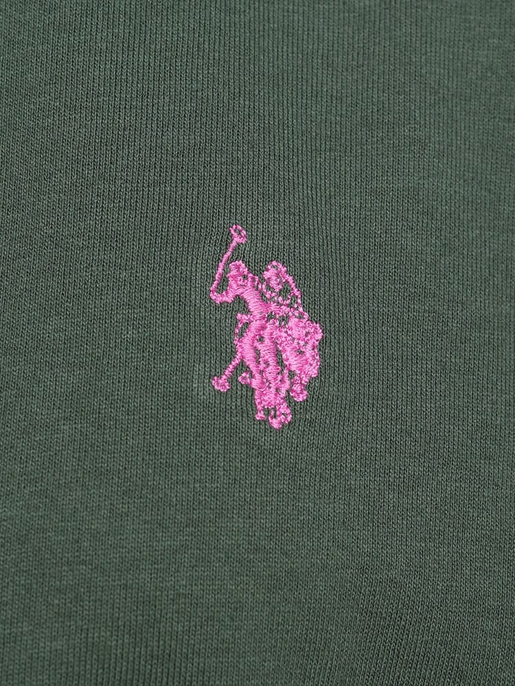 US.POLO ASSNのクルーネック半袖Tシャツは、胸元に象徴的なダブルホースマンのワンポイント刺繍が施されています。快適な着心地の素材で作られ、カジュアルながらも洗練されたデザインが特徴です。日常使いからスポーツシーンまで幅広く活躍します。