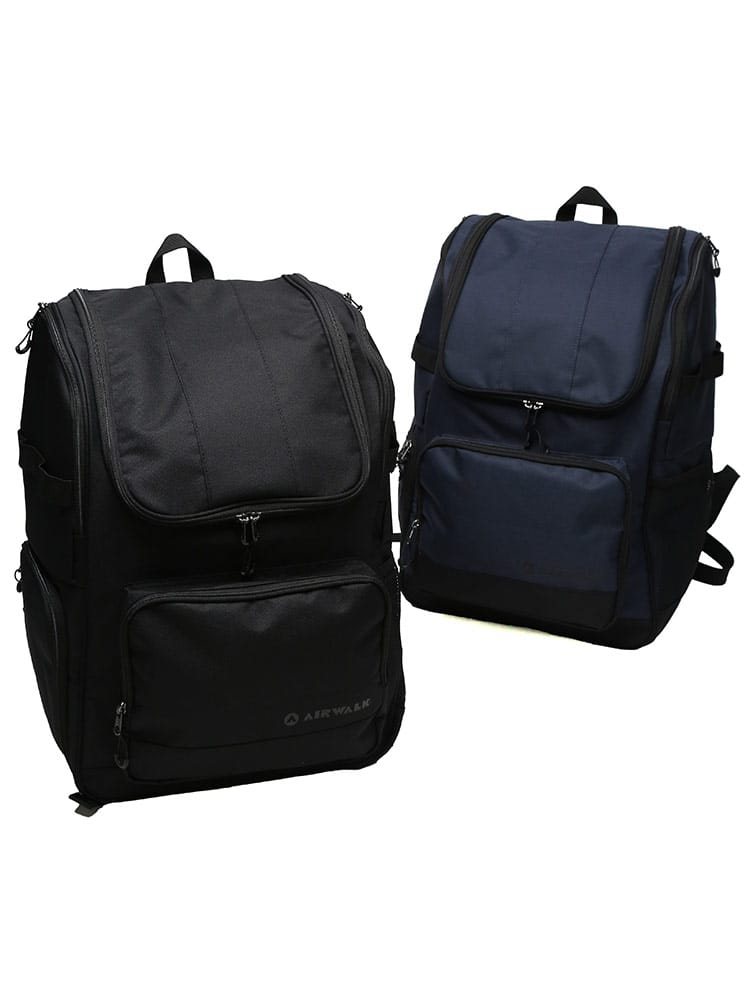 AIRWALKの37リットル大容量バックパックは、洗濯機で洗える利便性を備え、シューズポケットを含む9つの多機能ポケットで整理しやすい設計です。旅行、スポーツ、日常使用に適しており、耐久性にも優れています。持ち運びに便利なデザインで、あらゆるシーンで活躍するバッグです。