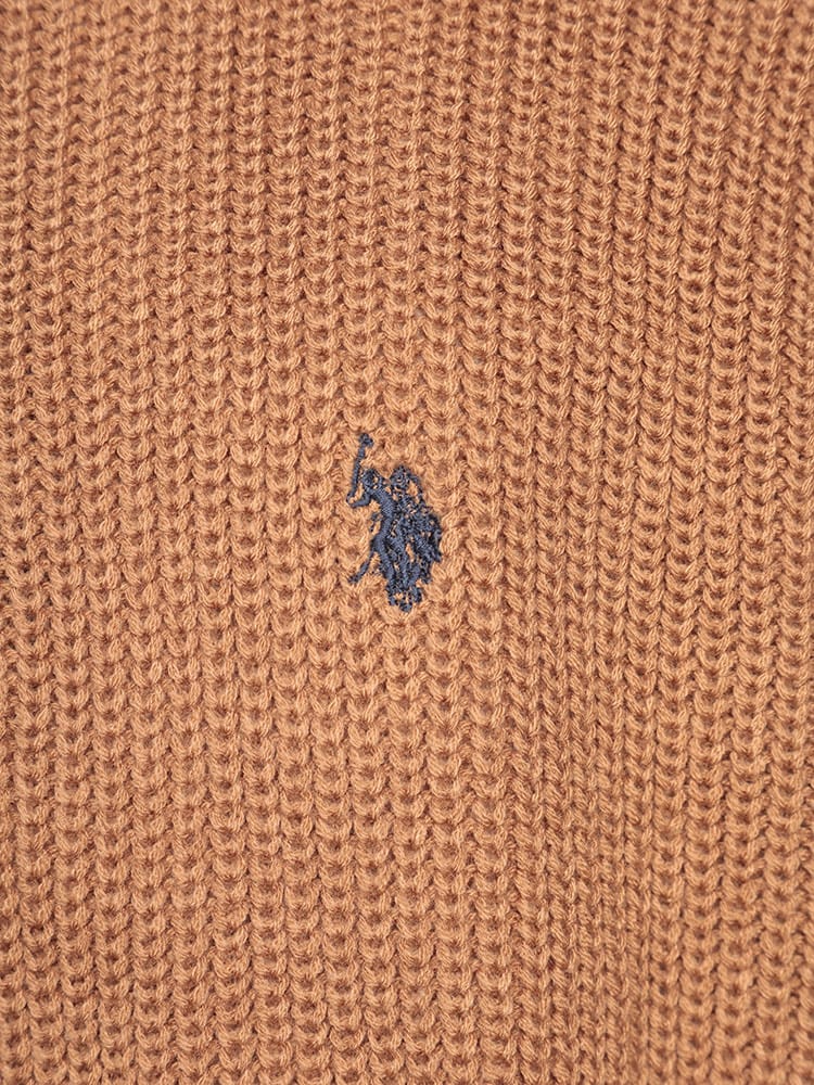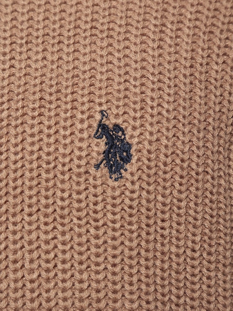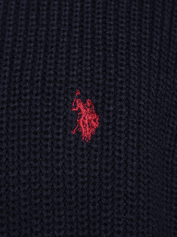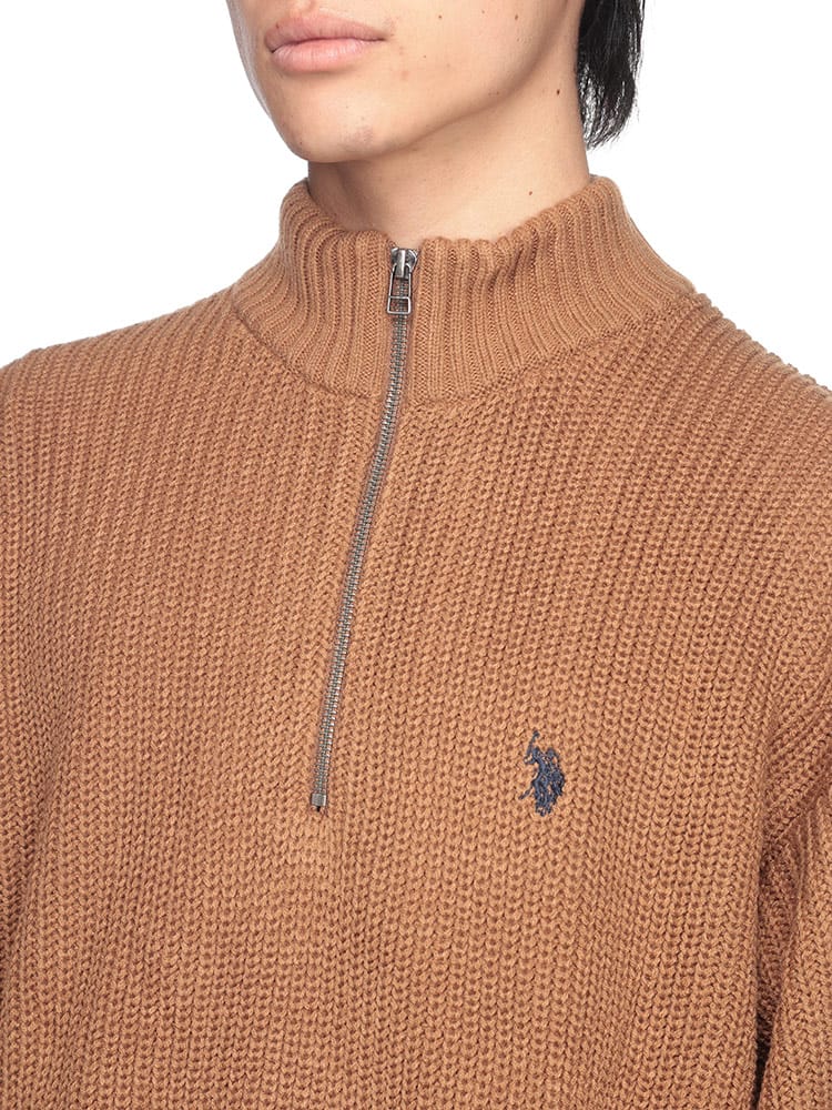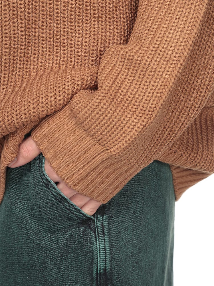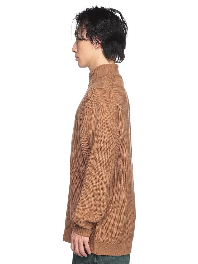 ゆったりとしたビッグシルエットが特徴のハーフジップニット。畔編みで表情豊かな生地感に、胸元のダブルホースの刺繍ロゴがアクセント。柔らかく肌触りの良いアクリル素材を使用しており、リラックスした着心地が魅力です。カジュアルなスタイルはもちろん、レイヤードスタイルにも合わせやすく、幅広いコーディネートを楽しめます。