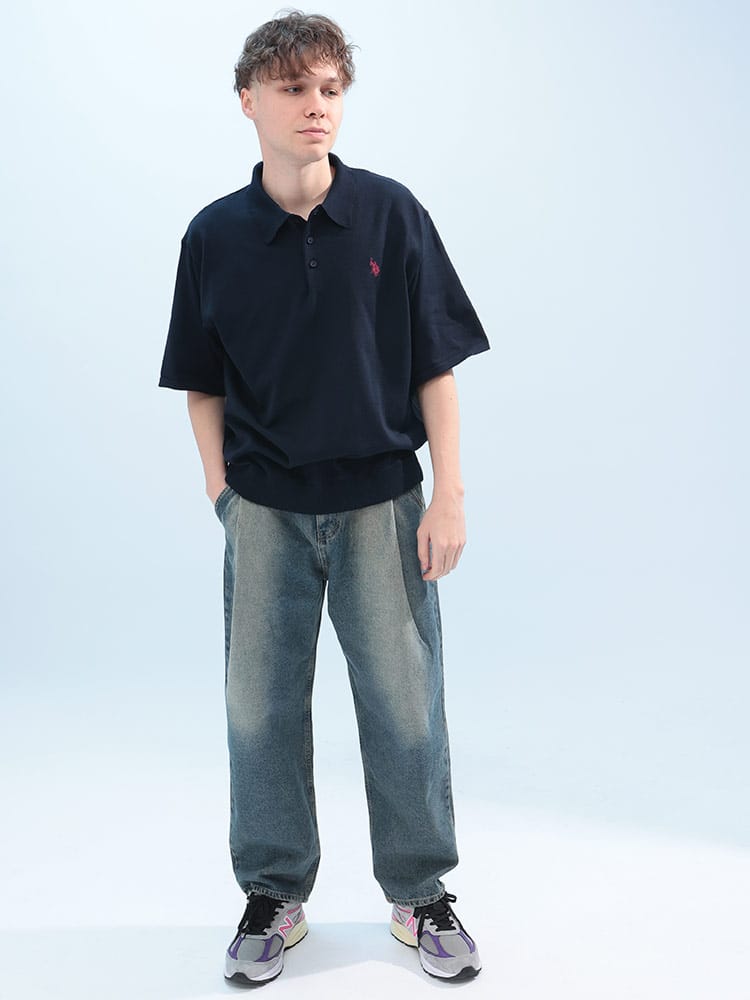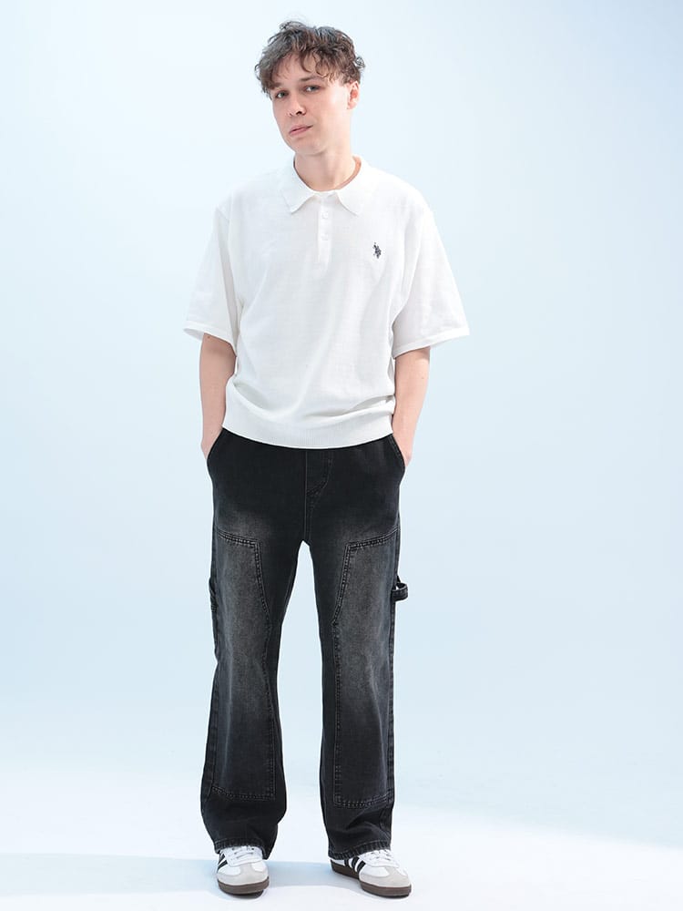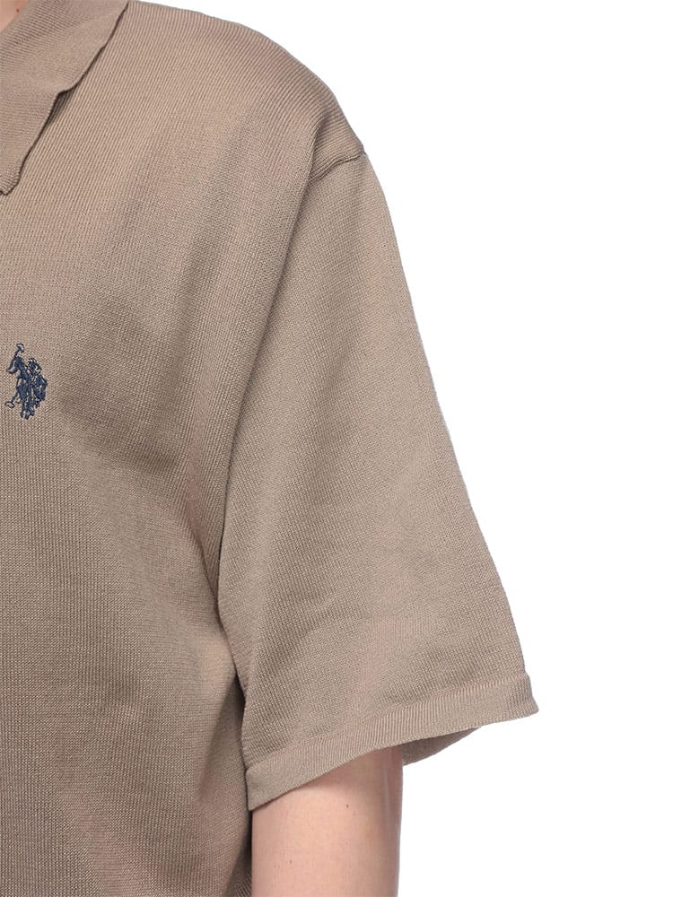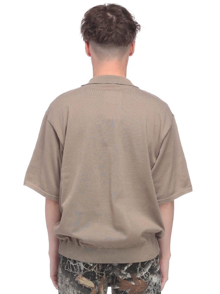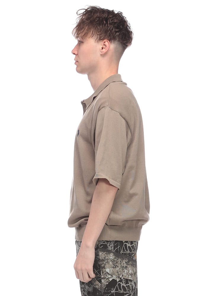 胸元のロゴ刺繍がワンポイントの半袖ニットポロシャツです。さらりと着心地の良い素材で、汗ばむ季節も快適。シンプルデザインなので、どんなボトムスとも合わせやすく、幅広いコーディネートを楽しめます。カジュアルな普段使いにぴったりです。