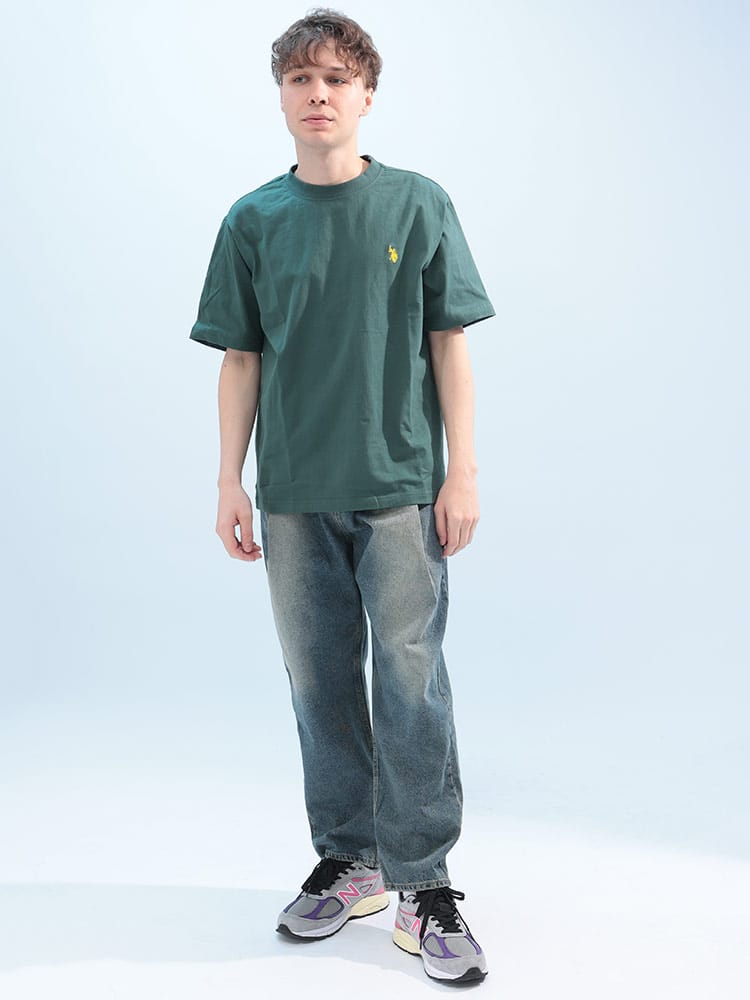 胸元のロゴ刺繍がワンポイントの定番Tシャツ。柔らかなコットン100%素材で着心地抜群。一枚でもインナーとしても大活躍。カジュアルからきれいめまで幅広く合わせやすいデザインです。春夏にぴったりの一枚。