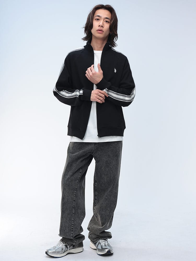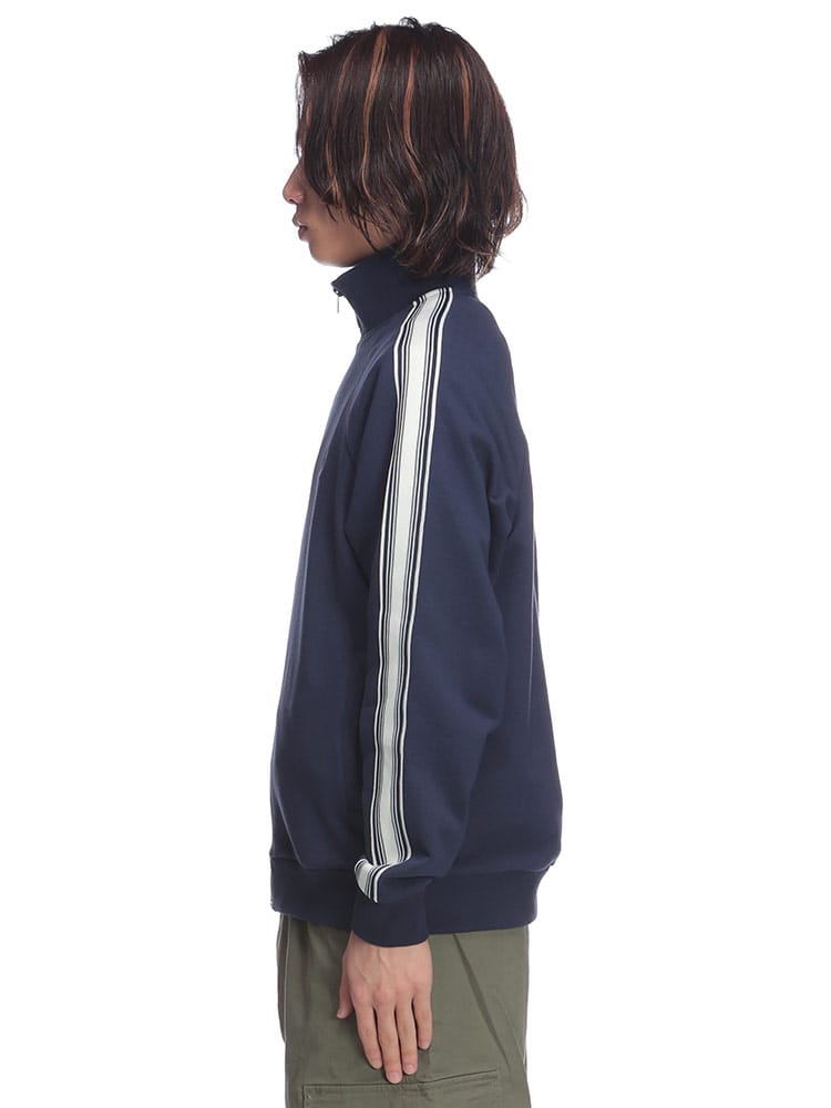 季節の変わり目に大活躍のアイテム!ラグランスリーブにすることで、より動きやすいデザインに◎カジュアルから古着コーデまで幅広いスタイリングと相性抜群◎羽織りとしてだけでなくジップを閉じてスウェットのような感覚で着て頂くのも◎ジャージらしいストレッチ性もありイージーな着心地が魅力的です。