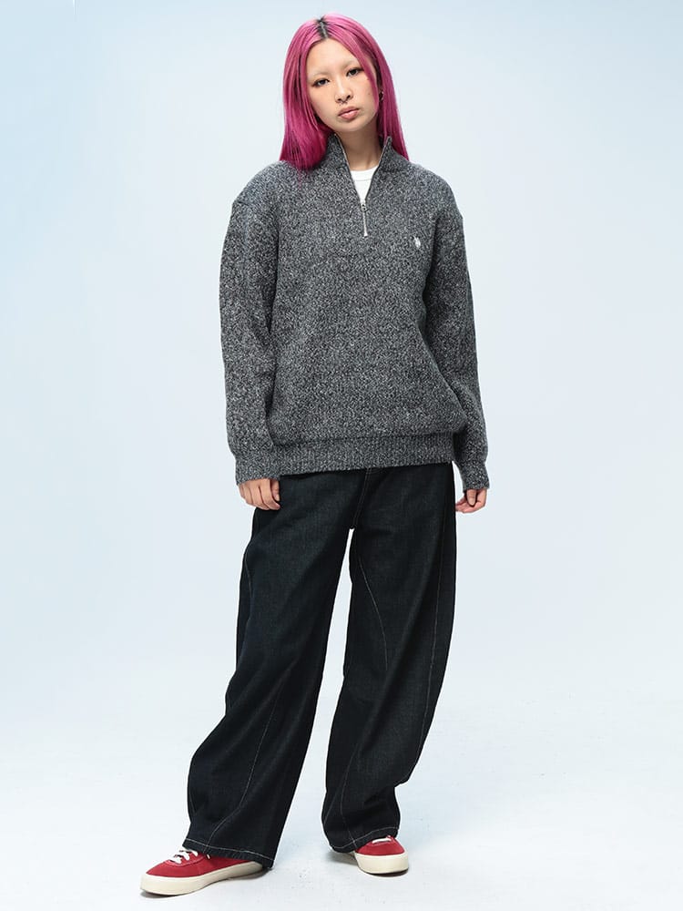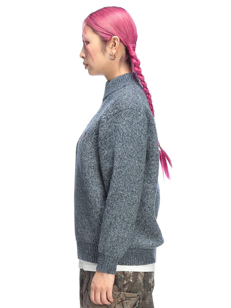 洗練された大人の着こなしを叶える、ハーフジップセーター。上品な襟元とハーフジップのデザインが、スポーティかつ知的な印象を与えます。素材には、やわらかく保温性に優れたポリエステルを100%使用。軽量で快適な着心地ながら、寒い季節もしっかりと暖かさをキープします。ニット特有のチクチク感が苦手な方にもおすすめです。胸元にはブランドの象徴であるワンポイントロゴを配置。シンプルなデザインにさりげないアクセントを加えています。シャツやTシャツをインナーに合わせたレイヤードスタイルはもちろん、一枚で着用しても様になります。カジュアルからきれいめまで、幅広いシーンで活躍する万能な一着です。