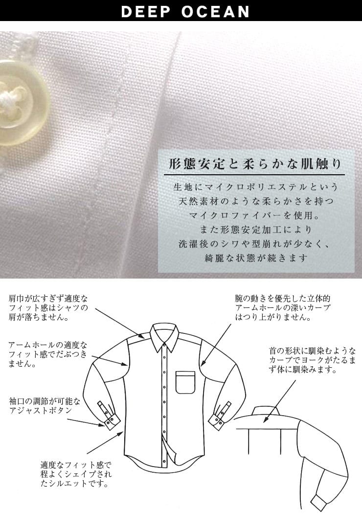 DEEPOCEAN 形態安定 白無地 長袖 ワイシャツ カッターシャツ lswy -ad