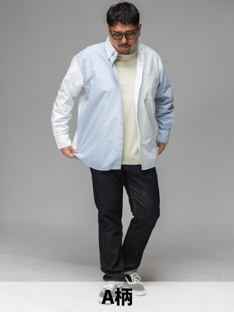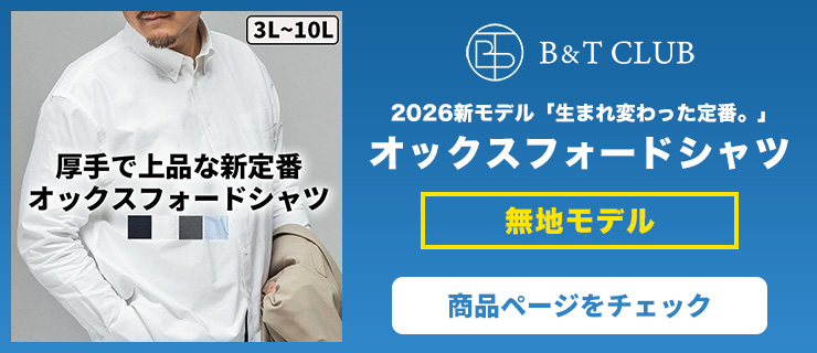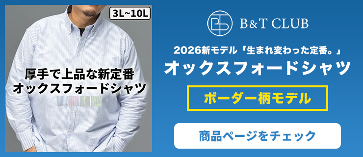 大きいサイズを着用されるお客様の「着心地の良さ」「見た目の良さ」「サイズの豊富さ」という全てのニーズに応えるために開発された、B&T CLUBの自信作「みつぼし長袖シャツ」。