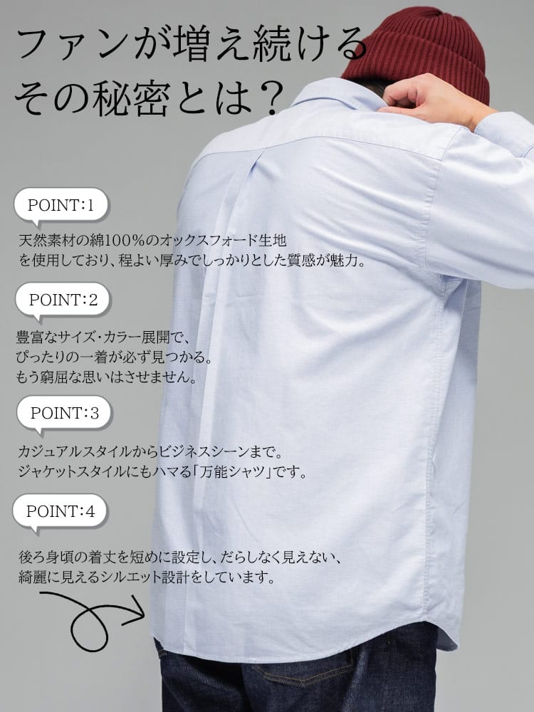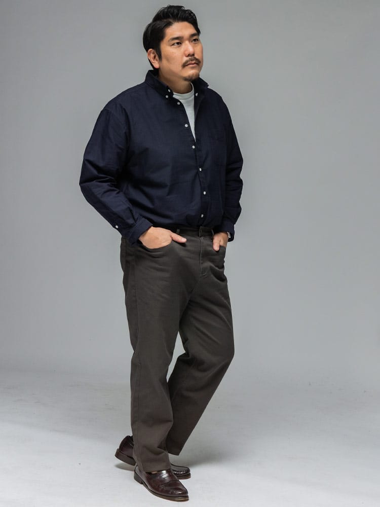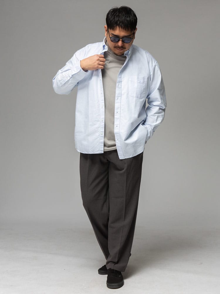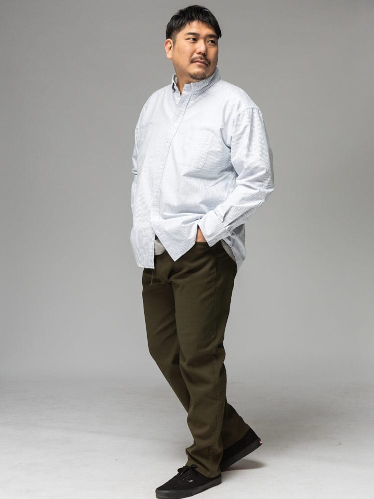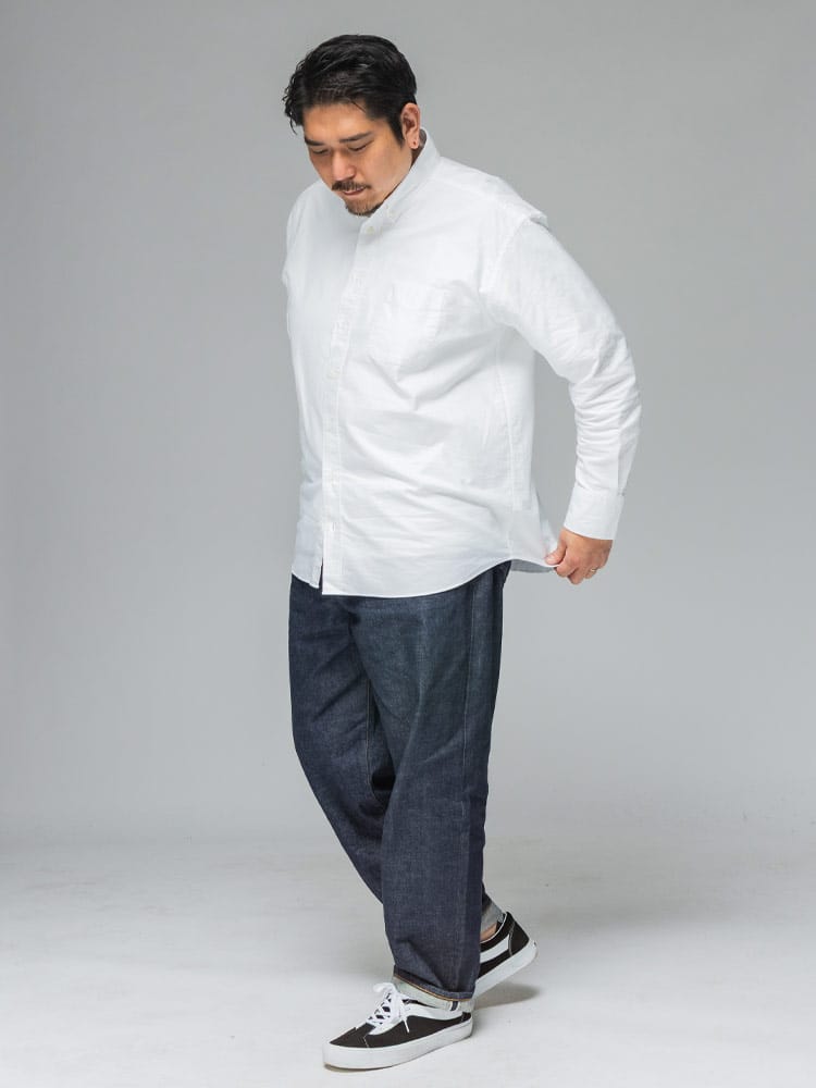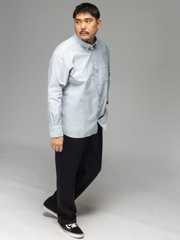 3L~10Lまで対応の安心感 ベーシックなシャツだからこそ、着る人を考え、3Lから10Lまでの幅広いサイズに拘り抜いたサイズ感とシルエット。ぴったりの一着が必ず見つかります。
