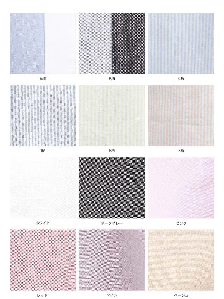 カラー:A柄、B柄、C柄、D柄、E柄、F柄、ホワイト、ダークグレー、ピンク、ワイン、ライトグリーン、スモークグリーン、グレー(青系)、ターコイズ、サックス、ネイビー、パープル