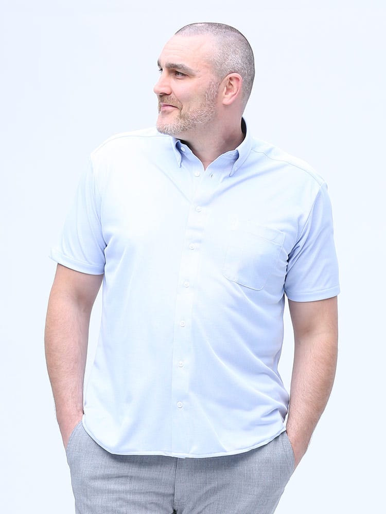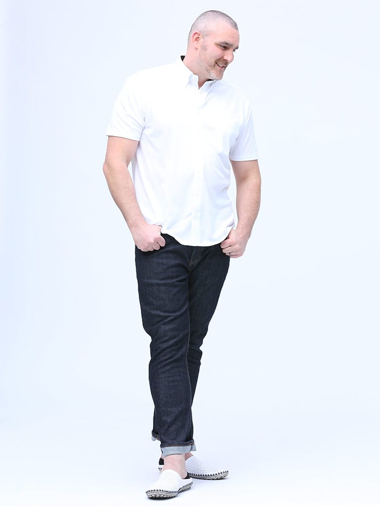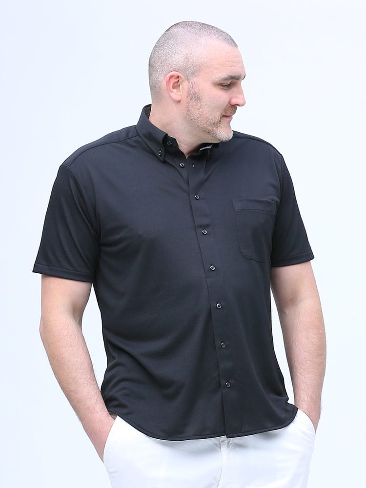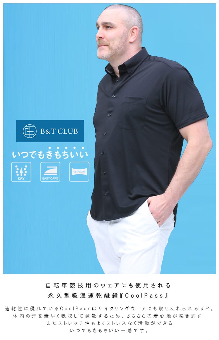 快適機能を搭載したドライ ストレッチ 鹿の子 無地 ボタンダウン 半袖 シャツです。左胸のポケットがポイント。吸水速乾、シワになりにくいイージーケア、ストレッチと快適な着心地を提供します。生地に永久型吸湿速乾繊維”CoolPass”を使用しています。無地のシンプルなデザインでビジネスシーンからカジュアルシーンに着ていただけます。