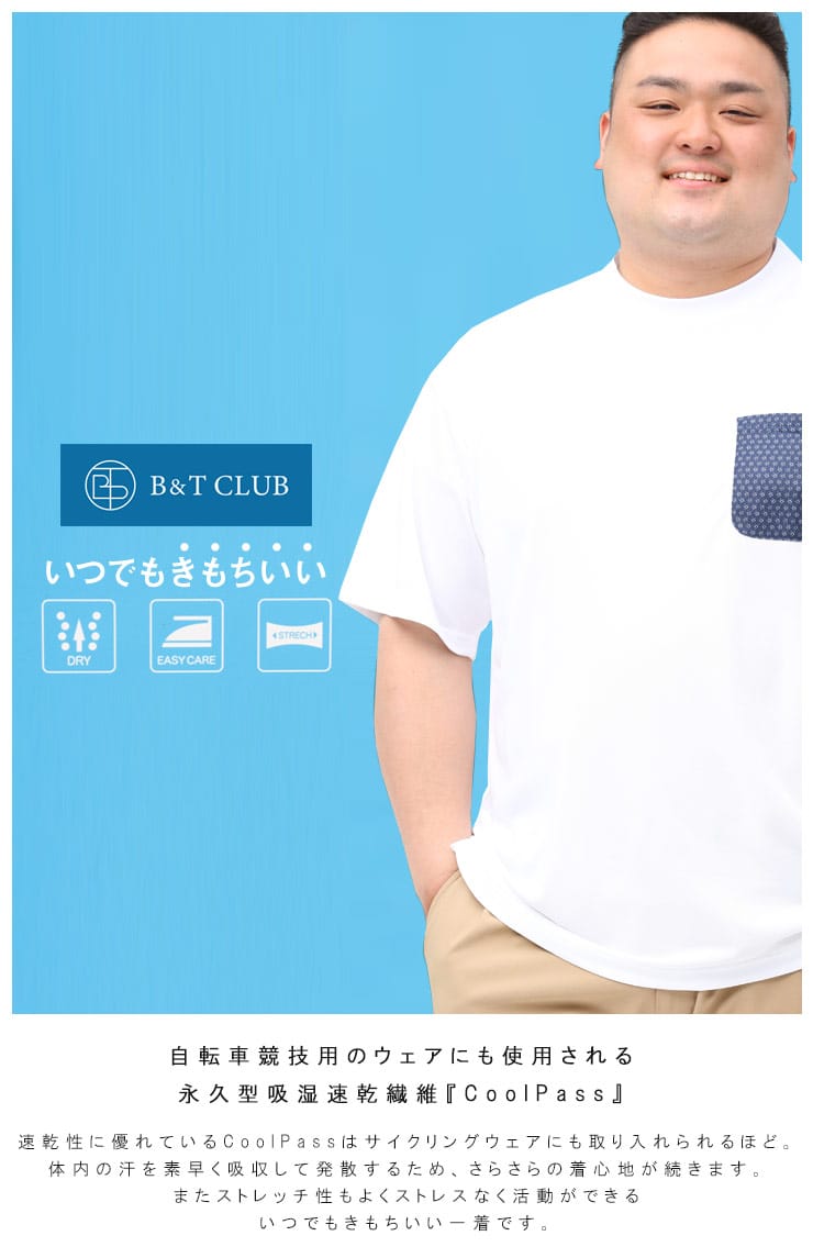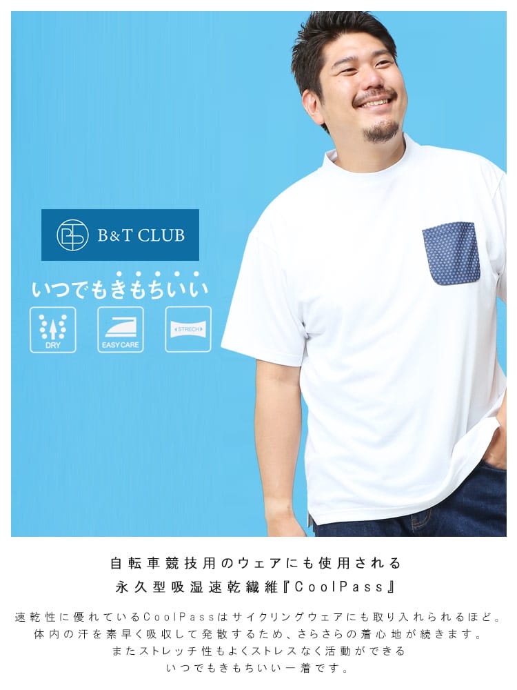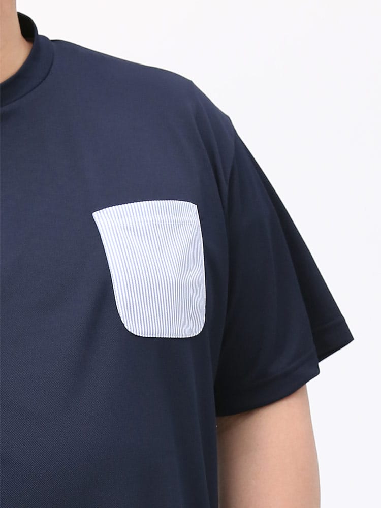 快適機能が付いた鹿の子 切り替えポケット クルーネック 半袖 Tシャツです。左胸のポケットがポイントです。裾サイドにスリット入り。涼しくさわやか、換気性に優れ、手触り柔らかい、永久型吸湿速乾繊維の「CoolPass」を使用。吸水速乾、イージーケア、ストレッチで着心地抜群です。