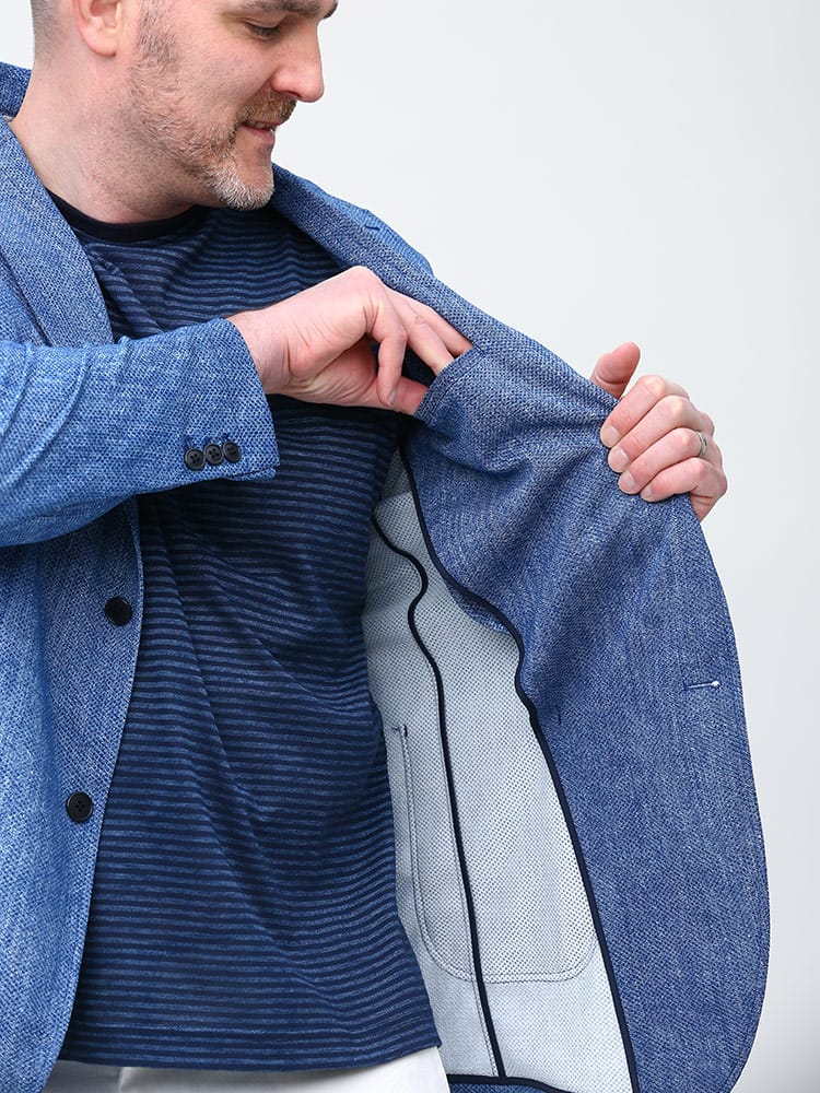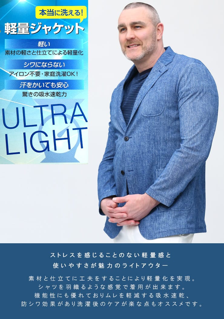 ご家庭でお手入れ出来るウォッシャブル機能が付いたデニムプリント メッシュ シングル ジャケットです。デニムプリントが程よいこなれ感を演出する一着。軽量性、シワにならない、吸水速乾で快適な着心地を提供します。お手持ちのパンツと合わせたジャケパンスタイルやカジュアルなスタイルにマッチするアイテムです。