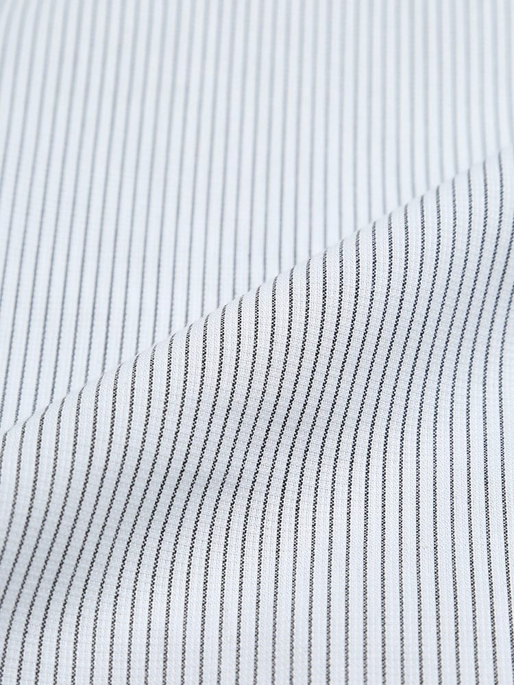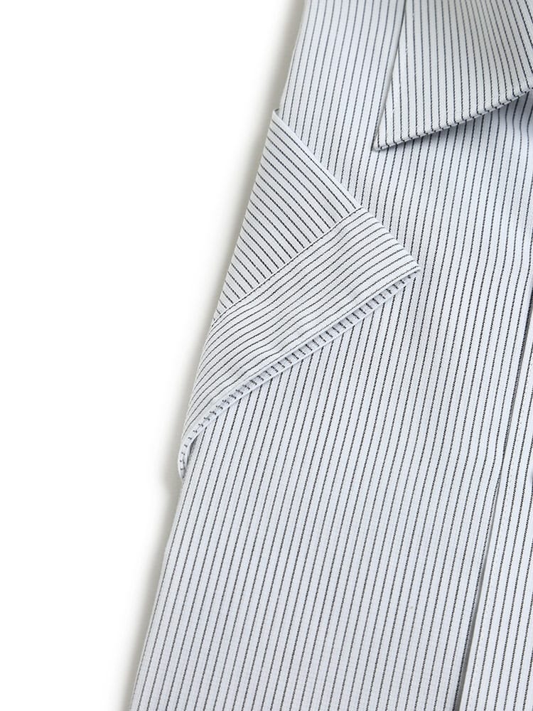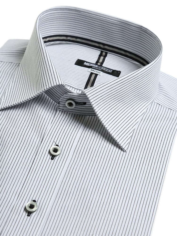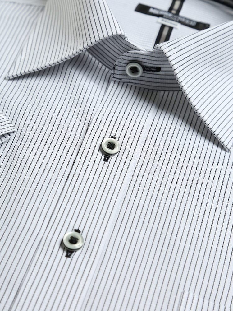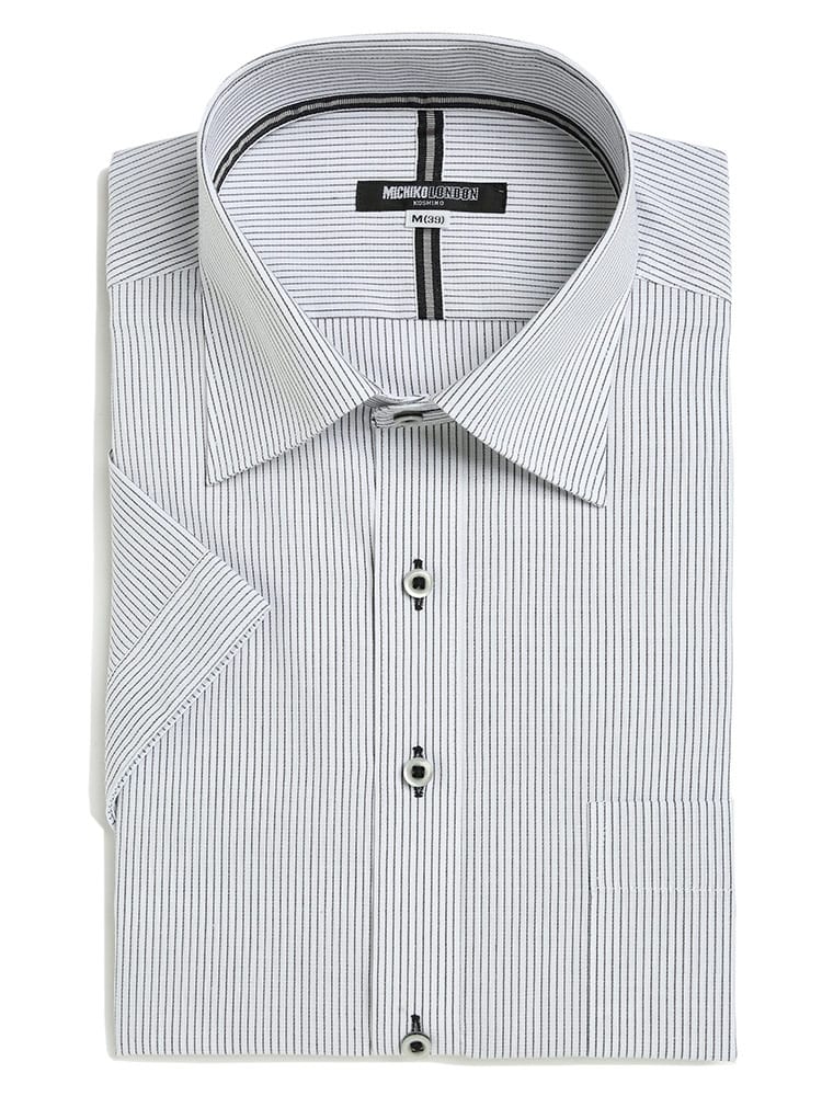 形態安定でお手入れが楽々なワイドカラー ストライプ 半袖 ワイシャツです。通気性に優れた校倉造り構造素材「アゼック」を使用しています。スッキリシルエットでスタイリッシュに着ていただける一枚。ビジネスシーンやパーティーシーンまでどんなシーンにお使いいただけます。