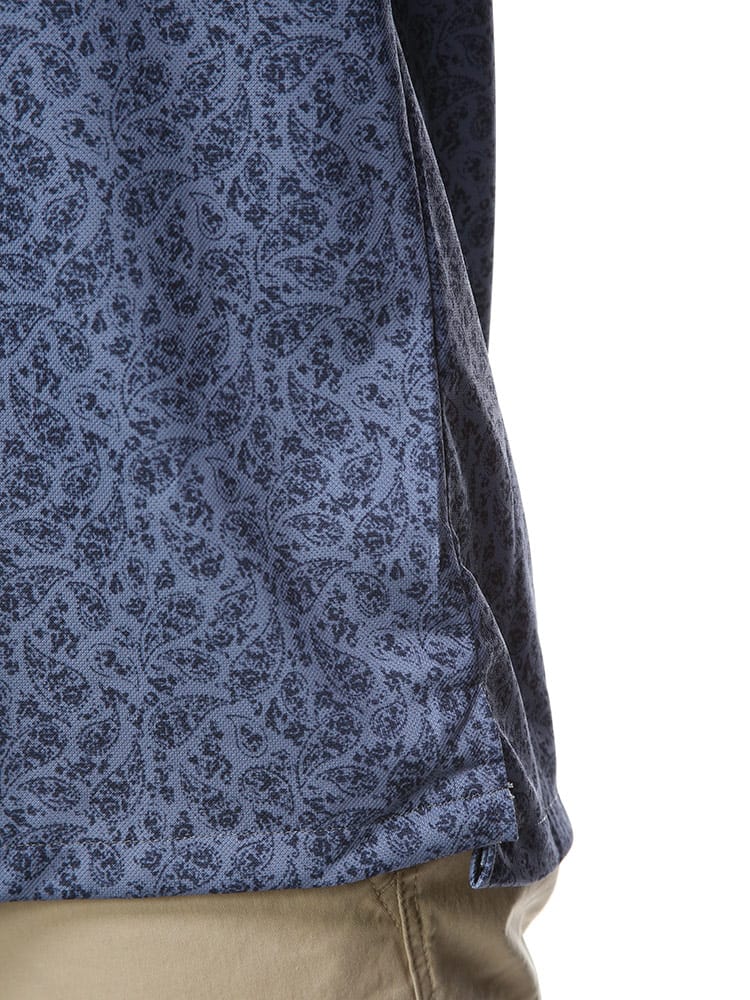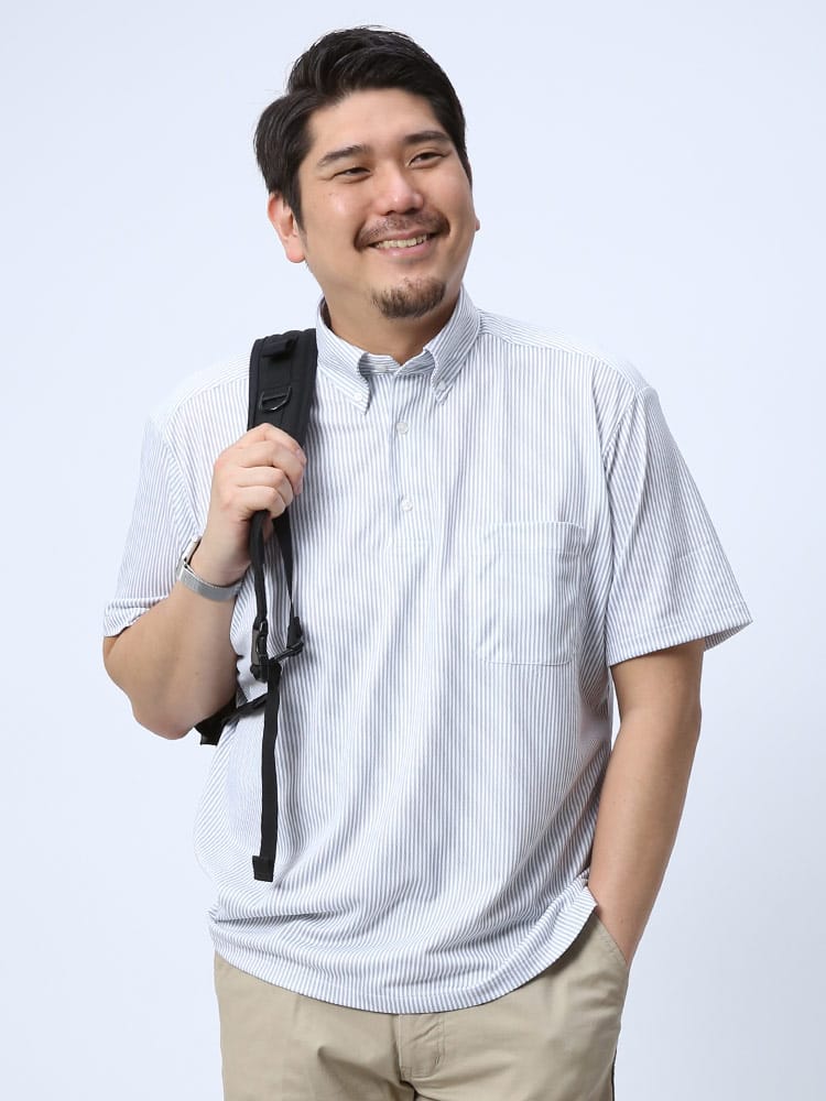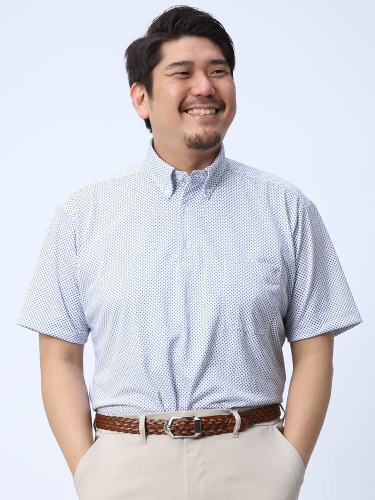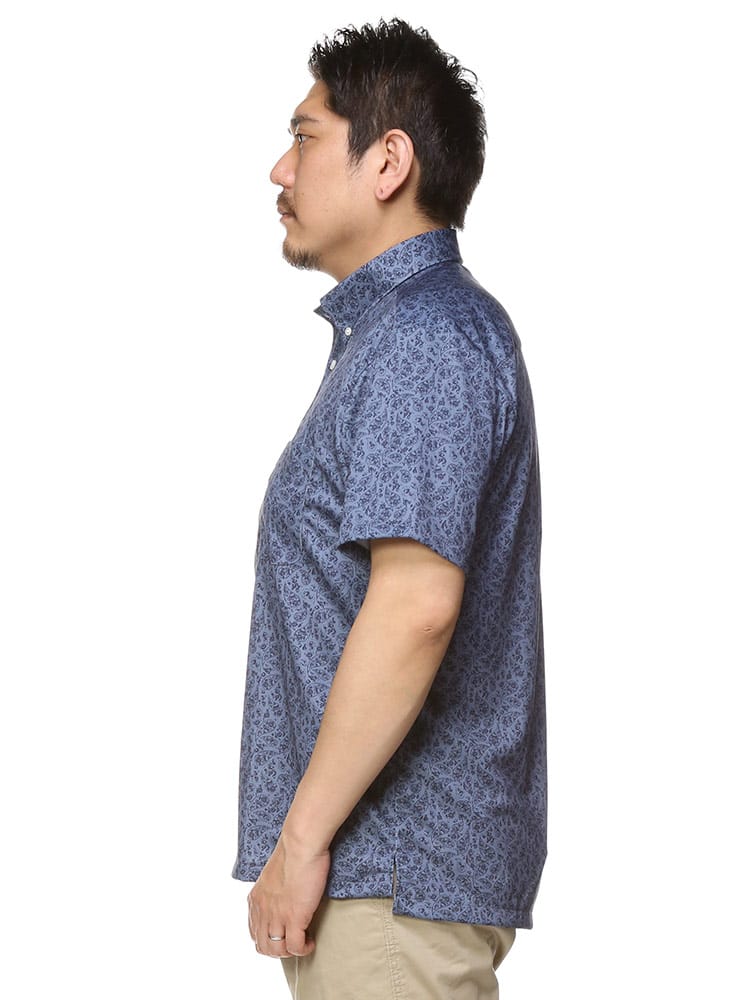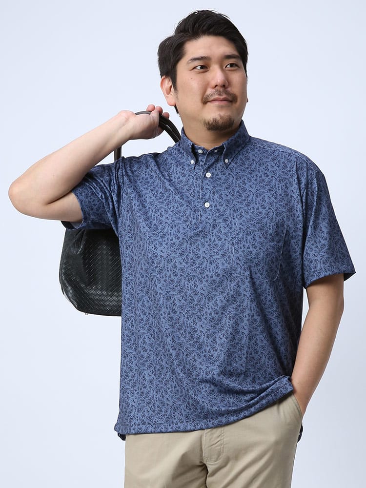 快適機能を搭載したドライ ストレッチ プリント ボタンダウン 半袖 ポロシャツです。左胸のポケットがポイント。吸水速乾、シワになりにくいイージーケア、ストレッチと快適な着心地を提供します。生地に永久型吸湿速乾繊維”CoolPass”を使用しています。プリントデザインがお洒落なアイテム。裾サイドに動きやすいスリット入り。