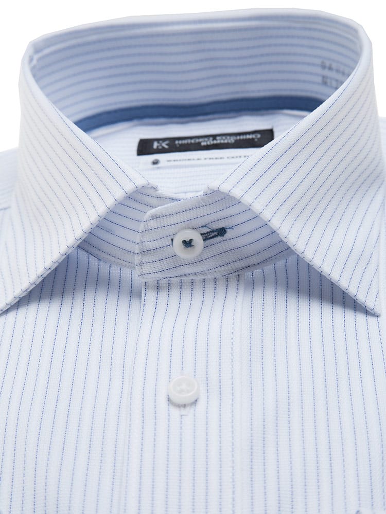 アイロンをかけなくても着用できる超形態安定のワイドカラー長袖ワイシャツです。キレイなスリムシルエットで、ビジネスシーンにはもちろんきれいめなスタイルにも合わせていただけます。サマーシーズンに最適な優れた通気性、接触冷感機能を搭載。毎日着るビジネスマンやアイロン嫌いの方にはおすすめの形態安定加工なので綺麗なフォルムを保ったまま着用することができます。