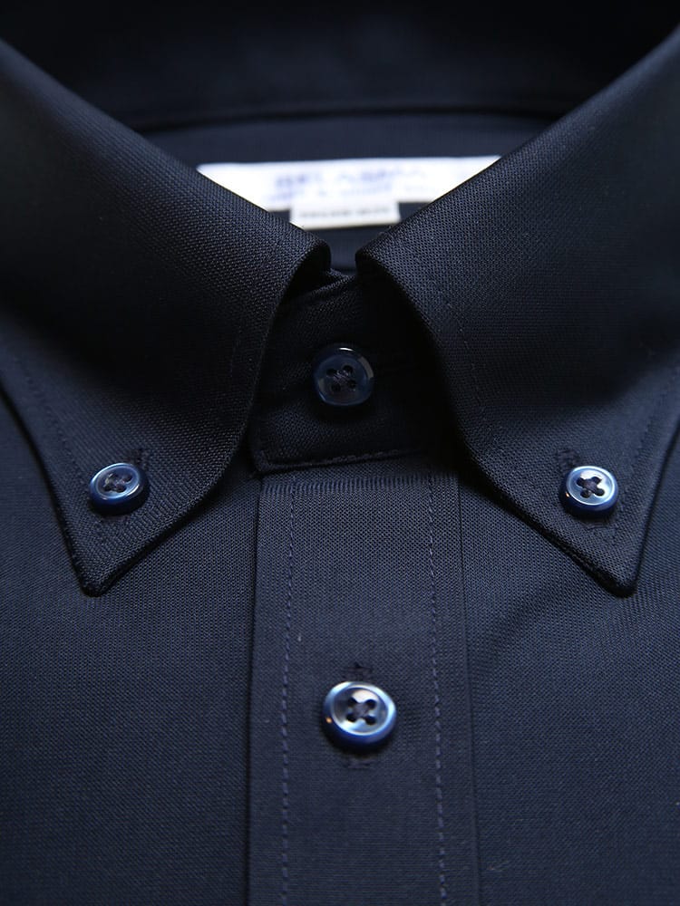 どんなシーンにも対応できる形態安定 ニット 長袖 ワイシャツ SLIMBODYです。体の動きになじむ快適な着心地のニット素材を使用。シワになりにくく。お手入れが簡単な形態安定加工を施しています。裾丈短めでボトムイン&ボトムアウトどちらもOK。細身のSLIM BODY設計。カラー、ネイビーはプルオーバーシャツタイプ。前立てのボタンが途中までのデザインになっています。