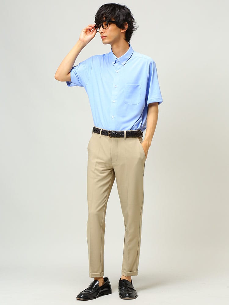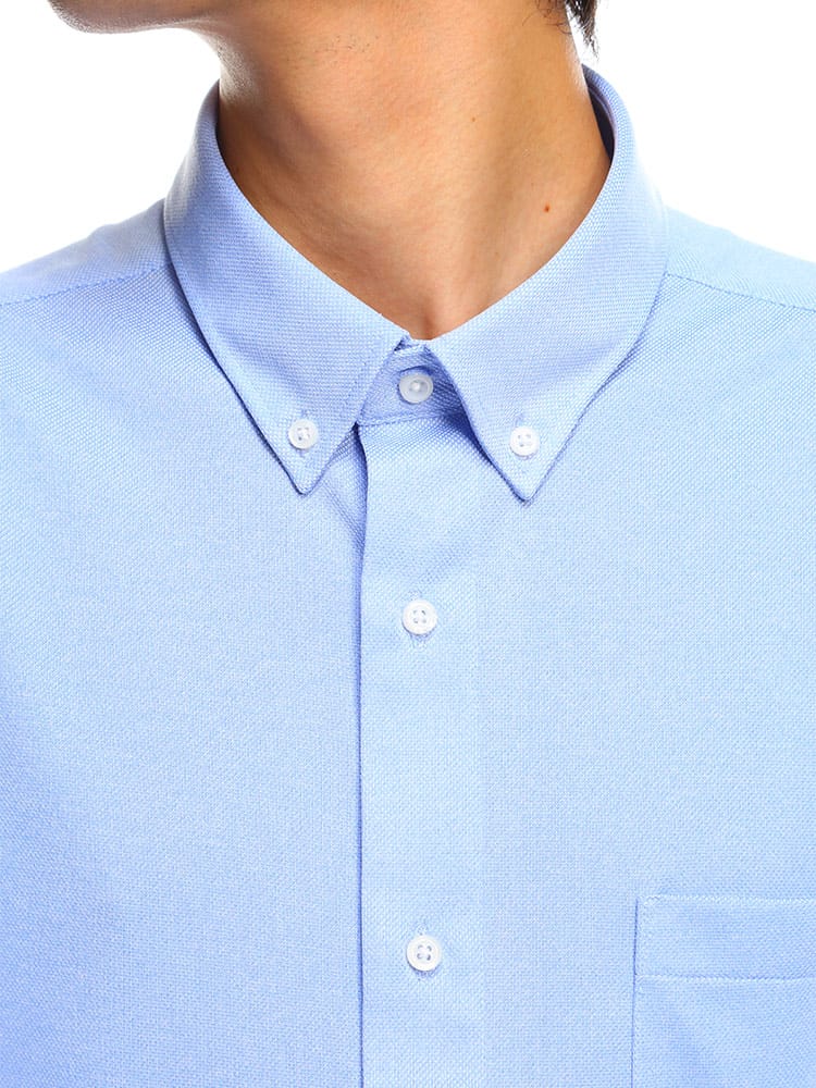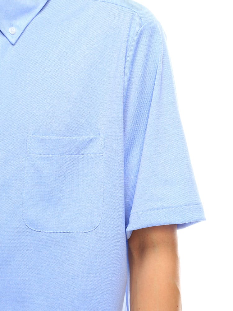 マルチシーンに着ていただける吸汗速乾 鹿の子 無地 ボタンダウン 半袖 シャツです。汗や湿気を素早く吸収拡散する快適機能素材「COOL PASS」を使用しています。首元はボタンダウンですっきりとした印象のアイテム。無地デザインでどんなスタイルにも取り入れていただけます。