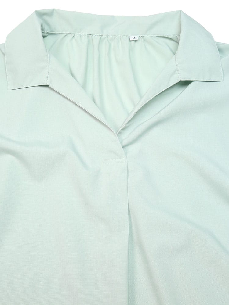 スキッパーカラーの半袖プルオーバーです。ラクっと!涼やかプルオーバー。やわらか素材なのにシワになりにくい!吸湿性があり蒸れにくく快適。夏に嬉しいひんやりタッチ。無地デザインで幅広いシーンに着ていただけます。