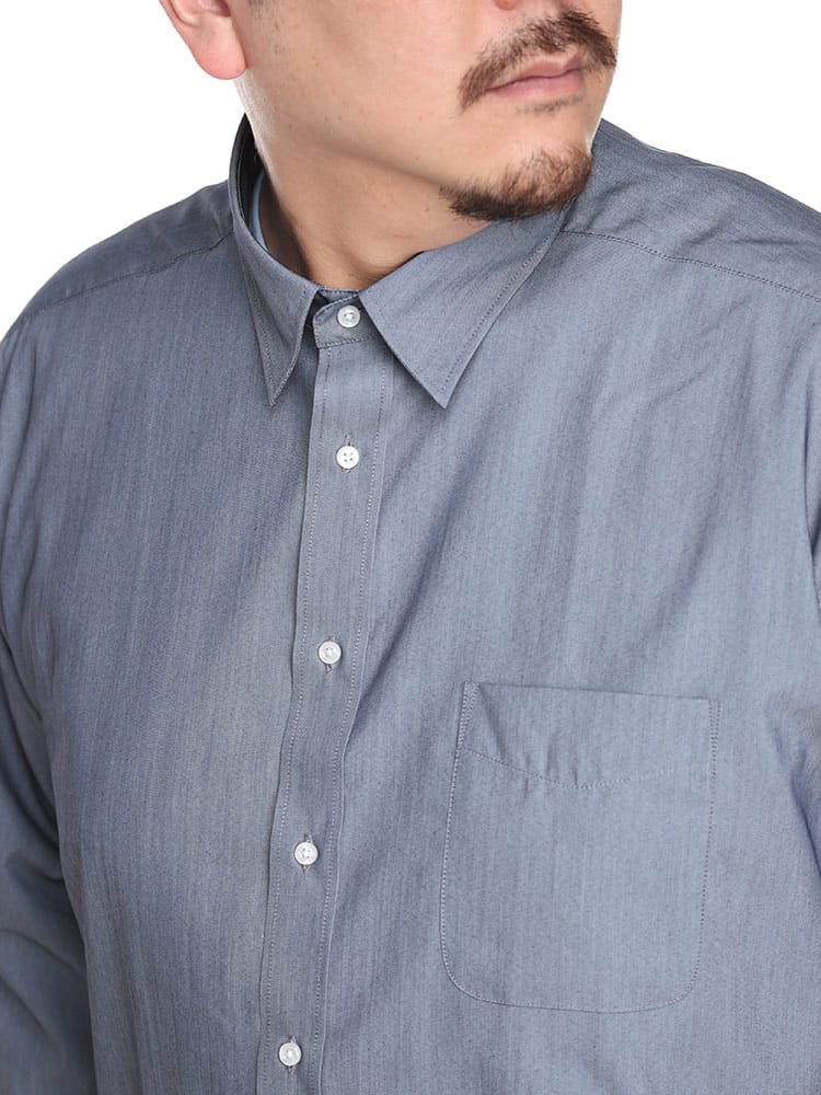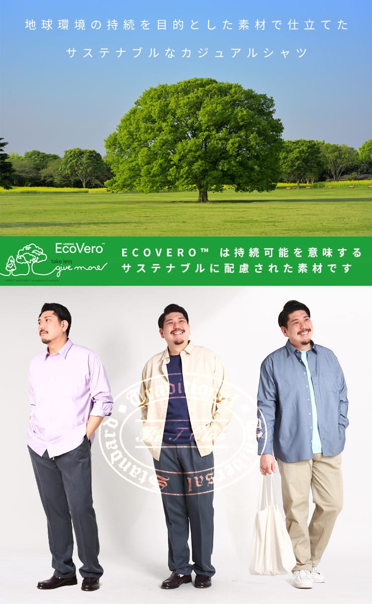 環境に配慮した植林法で管理された木材を使用し、特別な製造工程で丁寧に加工することで二酸化炭素と水質汚染を、一般的な繊維より50%軽減させた繊維EcoVero(エコヴェロ)を使用したレギュラーカラー長袖シャツ。サラッとした素材感でいい肌触り。これからの時期にピッタリな風を心地よく感じられる一枚となっています。一枚でも、羽織でも、つい袖を通したくなる、毎日着たいシャツ、ここにできました。