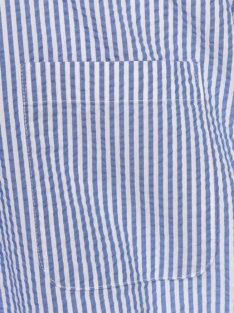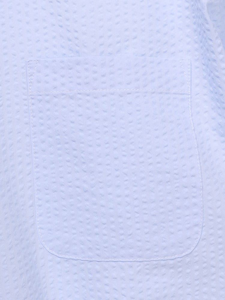 爽やかなシアサッカー地で仕上げた無地&柄 ボタンダウン 半袖シャツです。上品なデザインで首元はボタンダウン仕様。左胸ポケットがポイント。クールマックスコアテクノロジーにより、涼しくドライな着心地を提供します。大人のシャツスタイルにはもちろんビジネスシーンでも着ていただける一枚です。