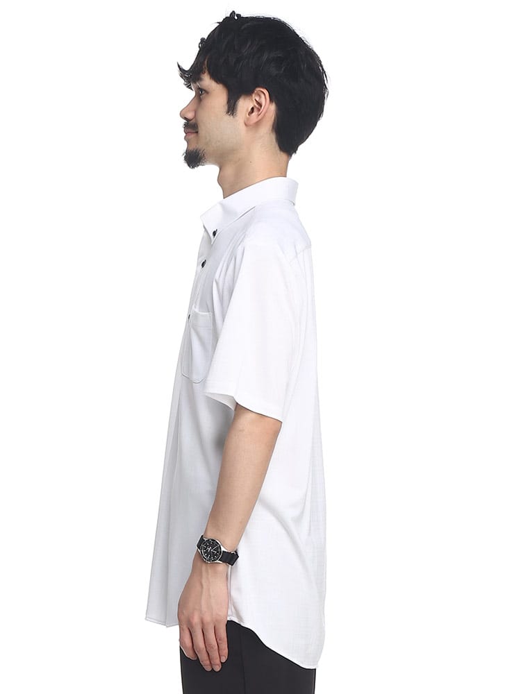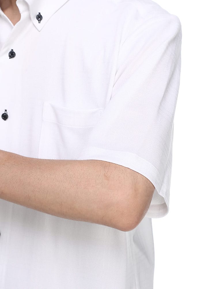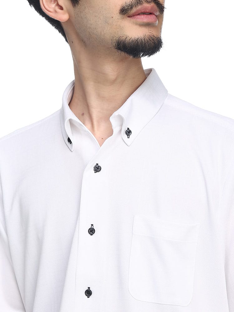 マルチシーンに着ていただける吸汗速乾 鹿の子 エンボス ボタンダウン スッキパー 半袖 シャツです。汗や湿気を素早く吸収拡散する快適機能素材「COOL PASS」を使用しています。首元はボタンダウンですっきりとした印象のアイテム。ベーシックなアイテムで幅広いボトムスとマッチします。