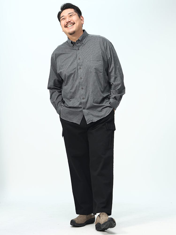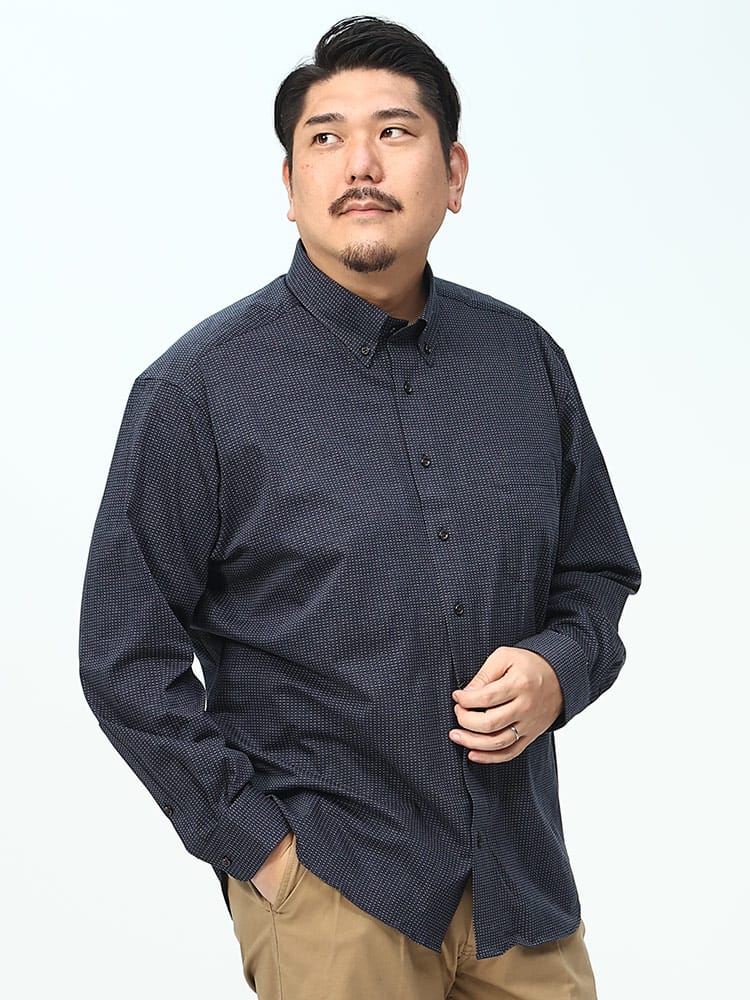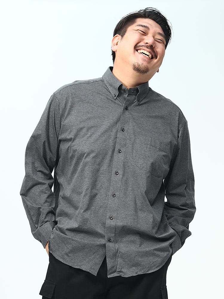 メランジニットのビズポロシャツは、洗練されたピンドット柄が特徴の前開きデザインです。ボタンダウン仕様と長袖スタイルで、ビジネスカジュアルな場面にぴったり。さらに、ストレッチ素材を使用しており、快適な着心地と動きやすさを提供します。スタイリッシュでプロフェッショナルな印象を与えるアイテムです。