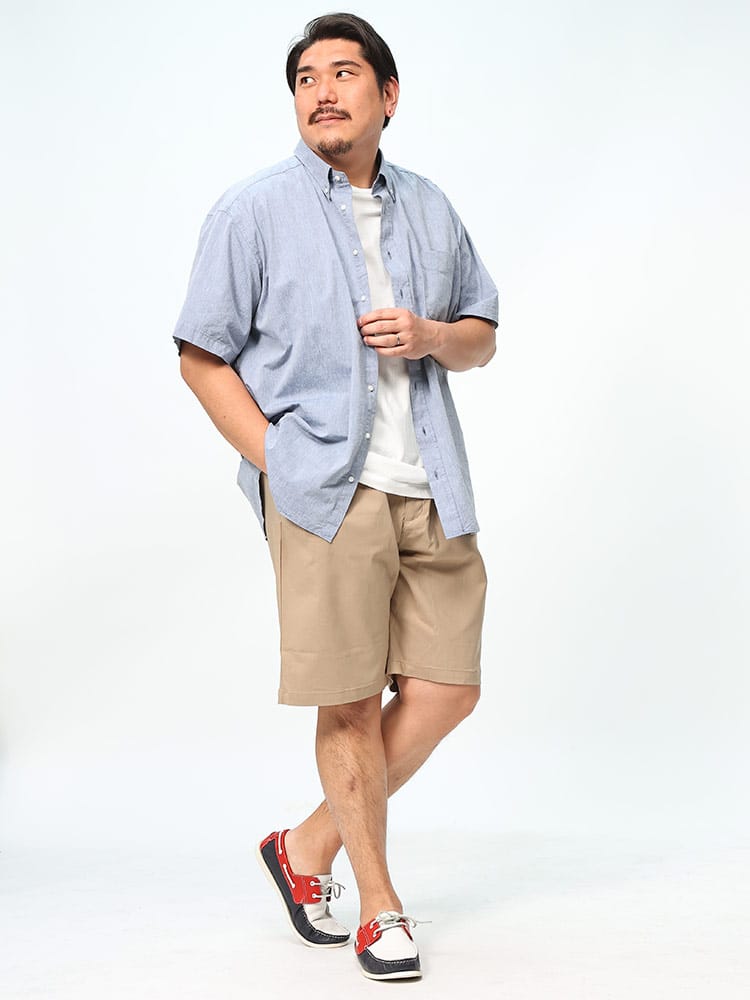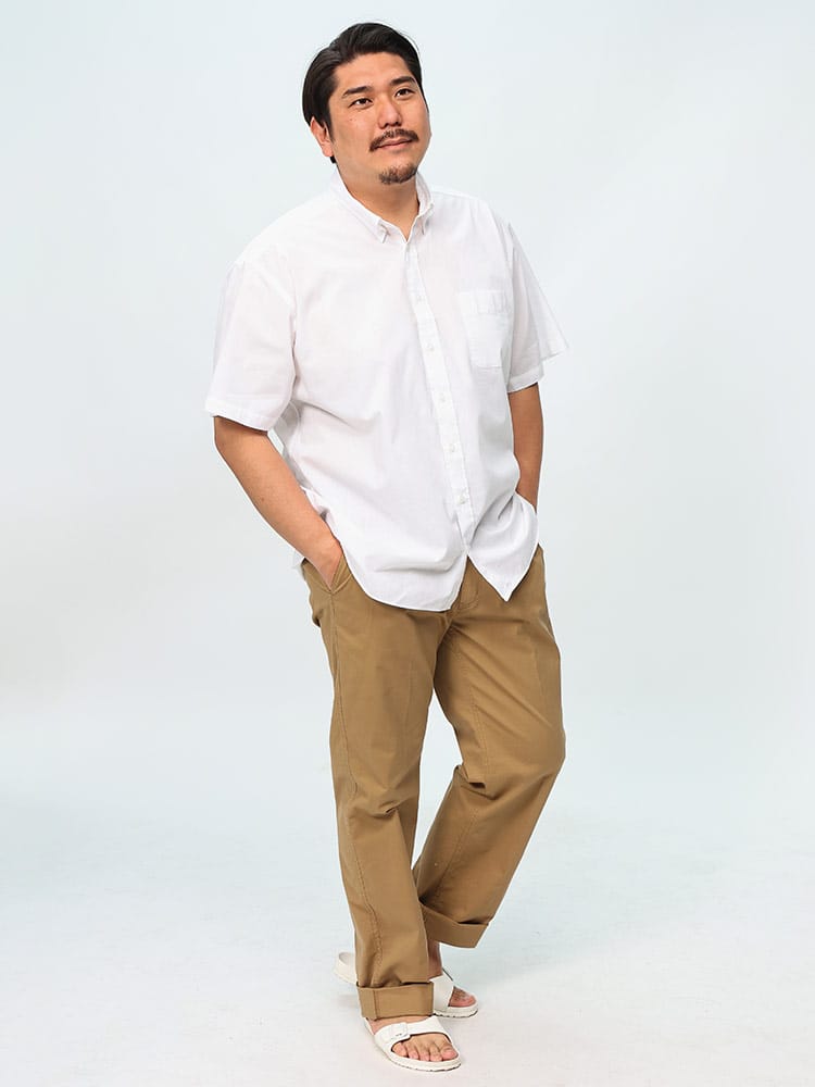 首元はビジネスにも使えるボタンダウン仕様。