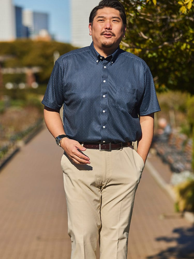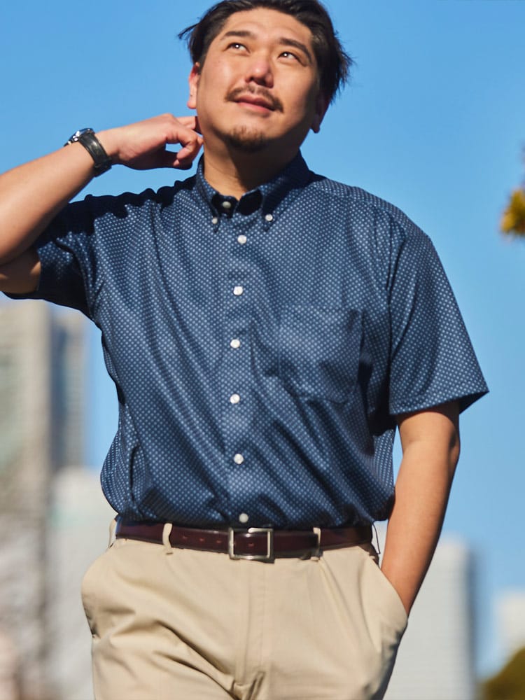 鹿の子総柄ビズポロは、前開きボタンダウンデザインを採用。鹿の子織りの素材を使用し、細かいテクスチャが特徴で、通気性と快適な着心地を提供します。総柄デザインは、ビジネスカジュアルに適した洗練されたスタイルを演出し、オフィスやカジュアルな集まりなど幅広いシーンで活躍します。襟のボタンダウンスタイルがきちんと感を与え、スマートな印象を演出します。このポロシャツは、機能性とファッション性を兼ね備えた、スタイリッシュで実用的なアイテムです。
