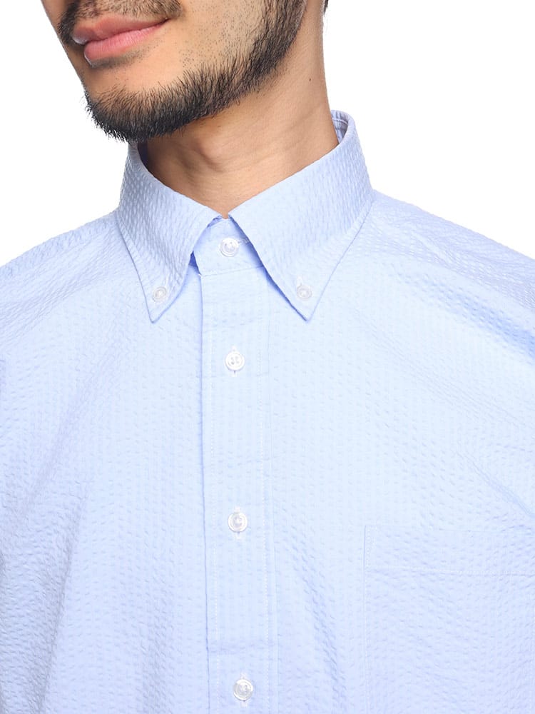 COOLMAXのシアサッカー半袖ボタンダウンシャツは、シアサッカーの凹凸感ある素材とCOOLMAX技術が組み合わさっており、通気性と吸汗速乾性に優れています。このシャツは、夏の暑い日にも快適に過ごせるようデザインされており、半袖とボタンダウンの襟がカジュアルながらもきちんとした印象を与えます。暑い季節のスマートカジュアルに最適です。