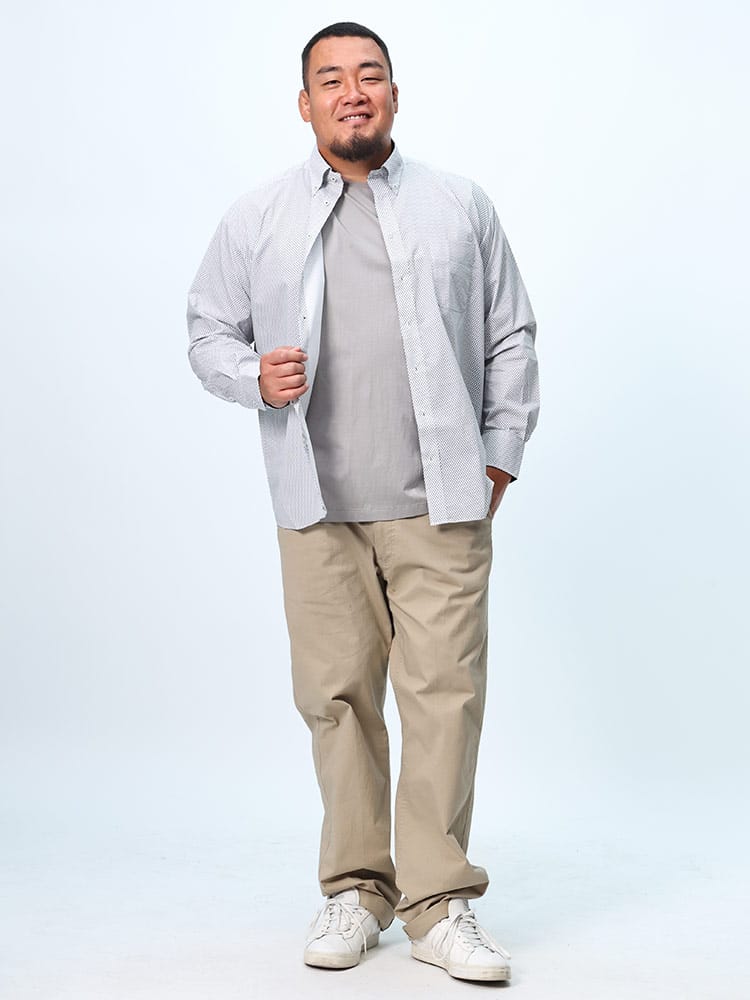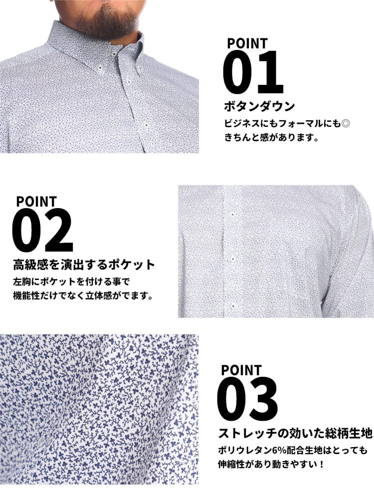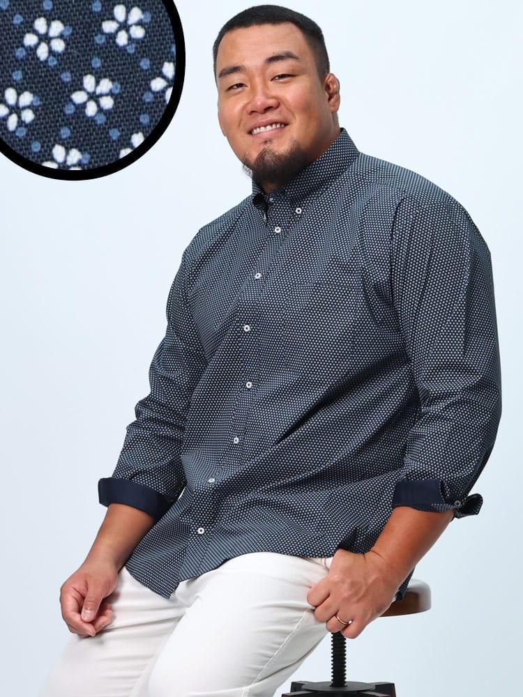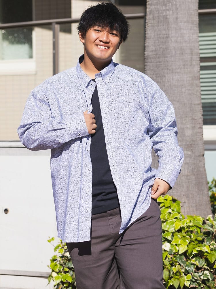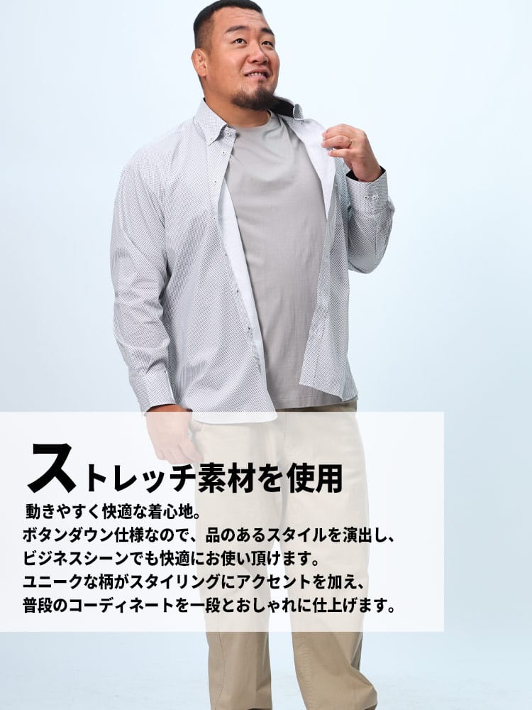 総柄プリント ストレッチ ボタンダウン 長袖シャツ