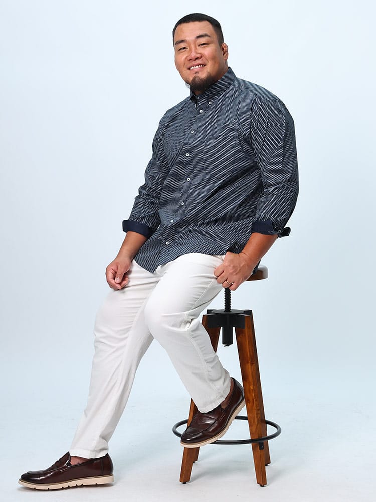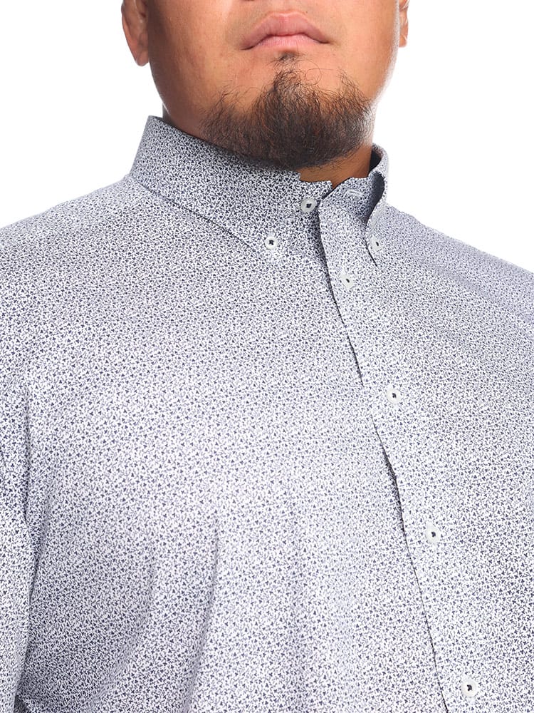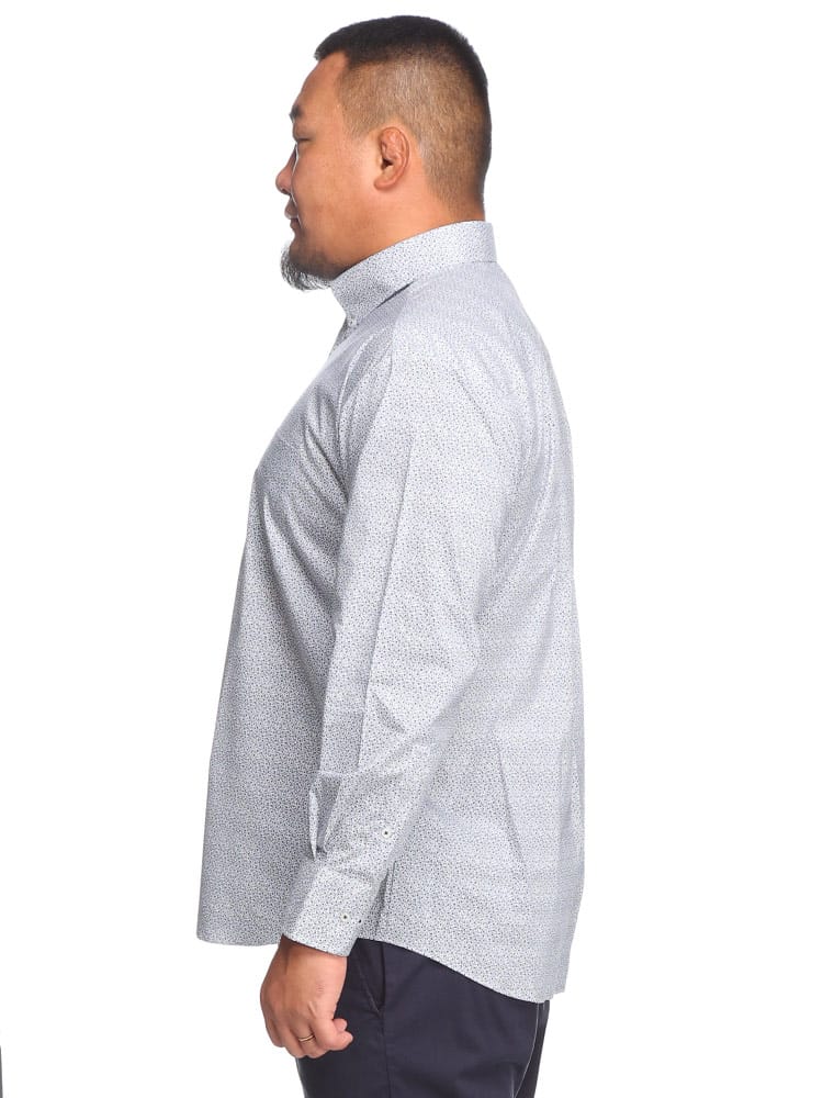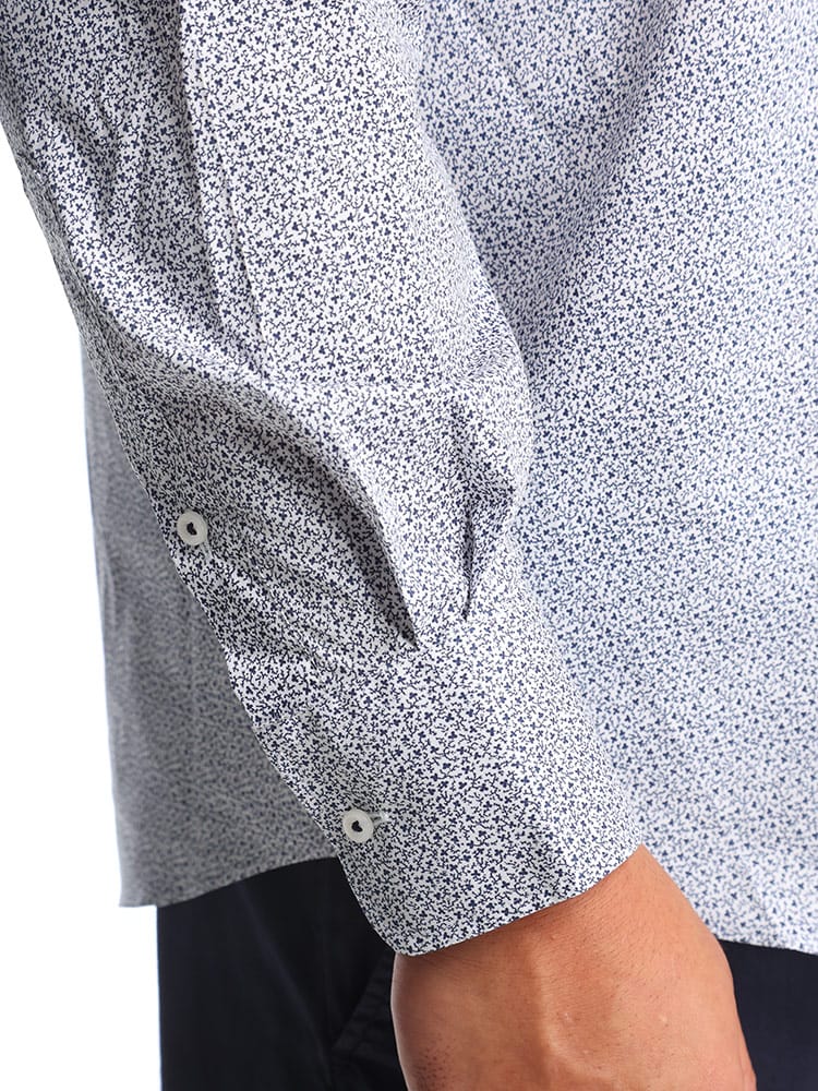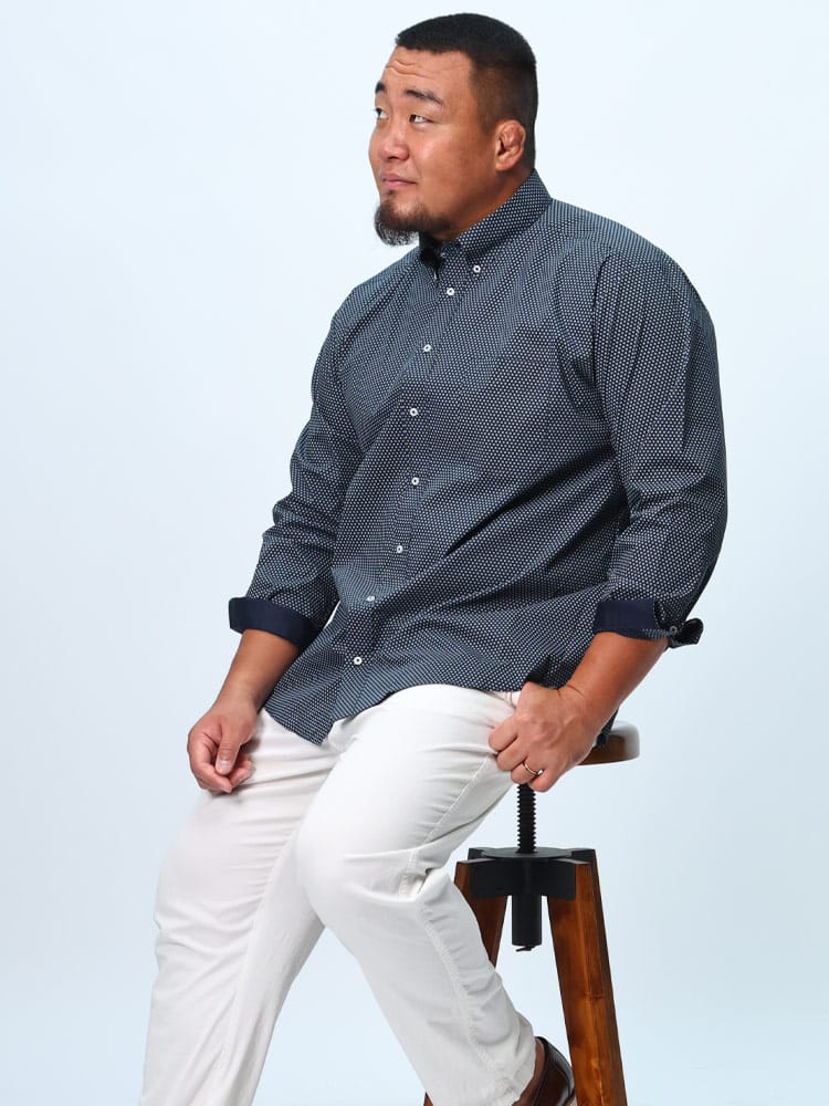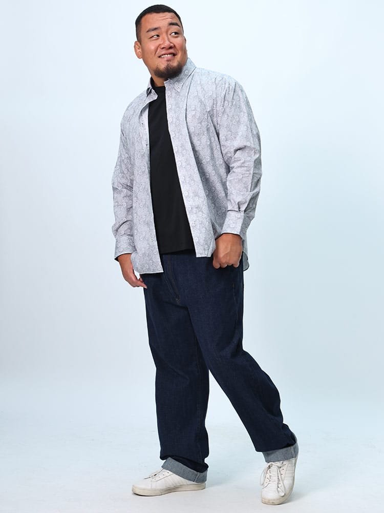 総柄プリント ストレッチ ボタンダウン 長袖シャツ