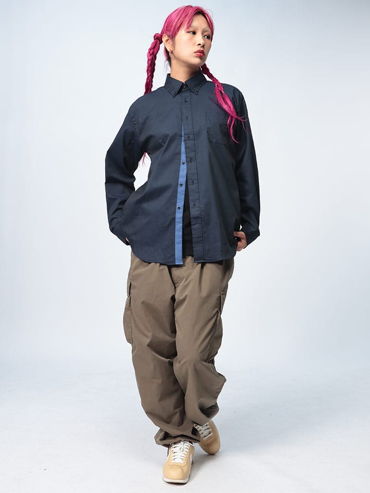 シンプルかつエレガントなデザインが特徴のボタンダウン長袖シャツです。無地のデザインとストレッチ素材を使用し、動きやすさと快適さを兼ね備えています。ビジネスからカジュアルまで、幅広いシーンで活躍するアイテムです。上質なボタンダウン仕様と丁寧な仕立てが、洗練された印象を与えます。