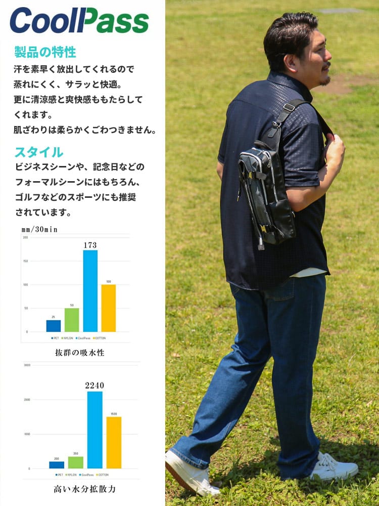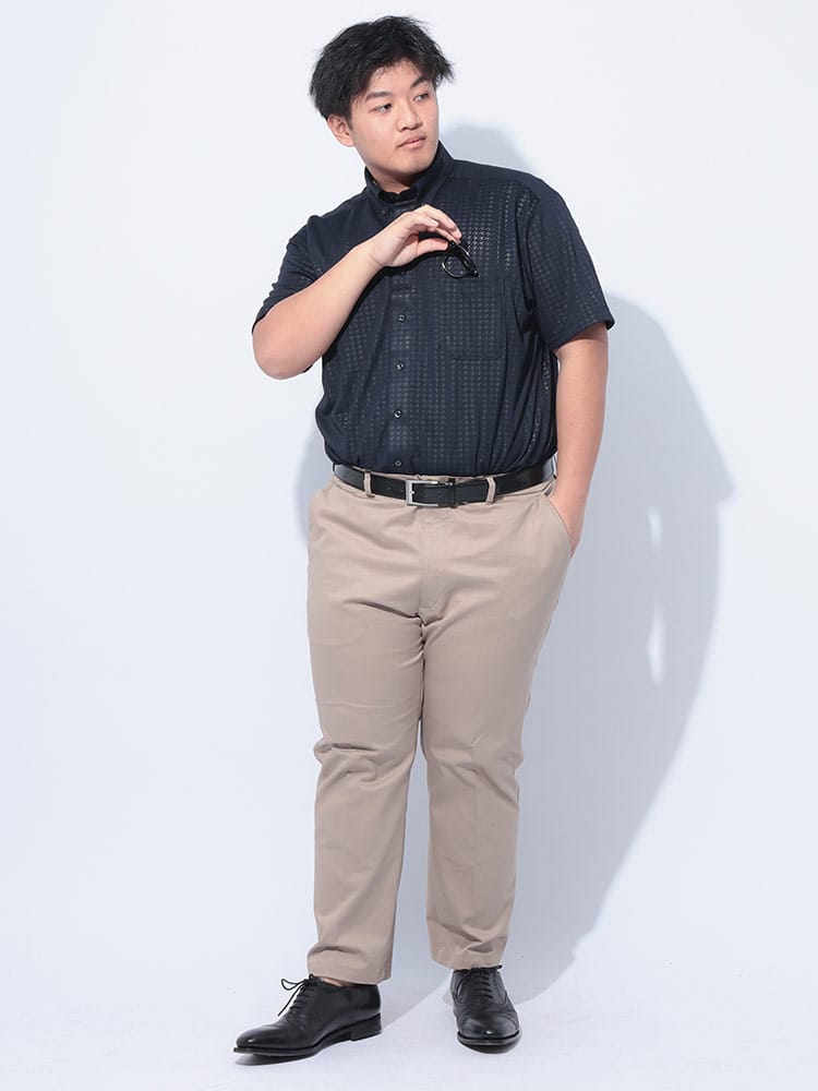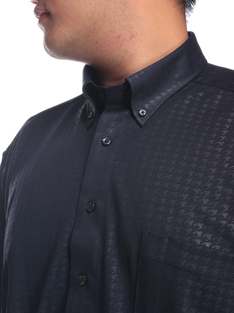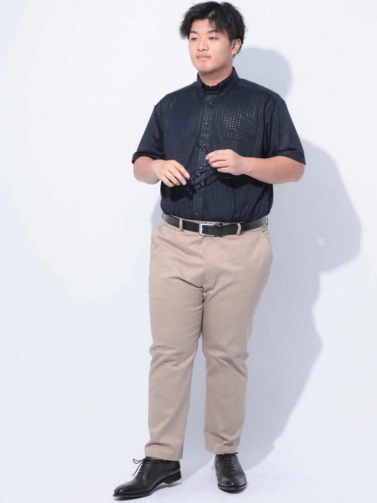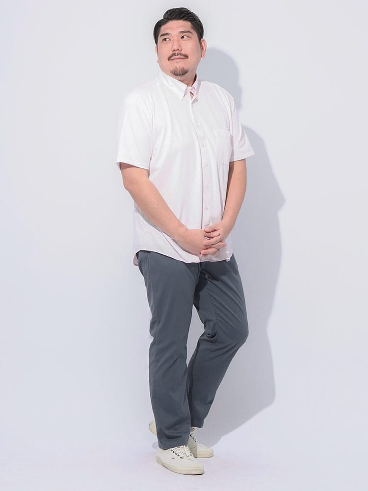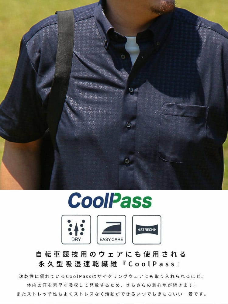 2025年春夏新作【ハタラクCOOL 】機能性特化ボタンダウンシャツこの無地のボタンダウン半袖シャツは、洗練されたデザインと高機能が融合した理想的な一枚です。素材には、永久型吸湿速乾素材のCOOLPASSを採用しています。これにより、汗を素早く吸収し、即座に乾燥させることで、常に快適な着心地を提供します。さらに、ノンアイロンのイージーケア仕様で、手間いらずの完璧なシルエットを維持。忙しい朝でも、さっと着るだけで清潔感あふれるスタイルが完成します。ストレッチ性も兼ね備えているため、動きやすさも抜群です。ビジネスシーンやカジュアルな場面でも、自由で快適な動きをサポートします。凹凸感のあるエンボス加工を施したさりげない千鳥柄がとってもお洒落。上品な鹿の子素材とボタンダウンデザインが、さりげなくエレガントな印象を演出。どんなシーンにも溶け込むのでヘビロテ間違いなしです。