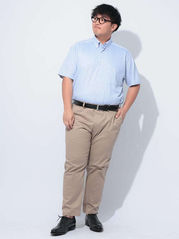 2025年春夏新作【ハタラクCOOL 】機能性特化ボタンダウンシャツこの無地のボタンダウン半袖シャツは、洗練されたデザインと高機能が融合した理想的な一枚です。素材には、永久型吸湿速乾素材のCOOLPASSを採用しています。これにより、汗を素早く吸収し、即座に乾燥させることで、常に快適な着心地を提供します。さらに、ノンアイロンのイージーケア仕様で、手間いらずの完璧なシルエットを維持。忙しい朝でも、さっと着るだけで清潔感あふれるスタイルが完成します。ストレッチ性も兼ね備えているため、動きやすさも抜群です。ビジネスシーンやカジュアルな場面でも、自由で快適な動きをサポートします。凹凸感のあるエンボス加工を施したさりげないチェック柄がとってもお洒落。上品な鹿の子素材とボタンダウンデザインが、さりげなくエレガントな印象を演出。どんなシーンにも溶け込むのでヘビロテ間違いなしです。