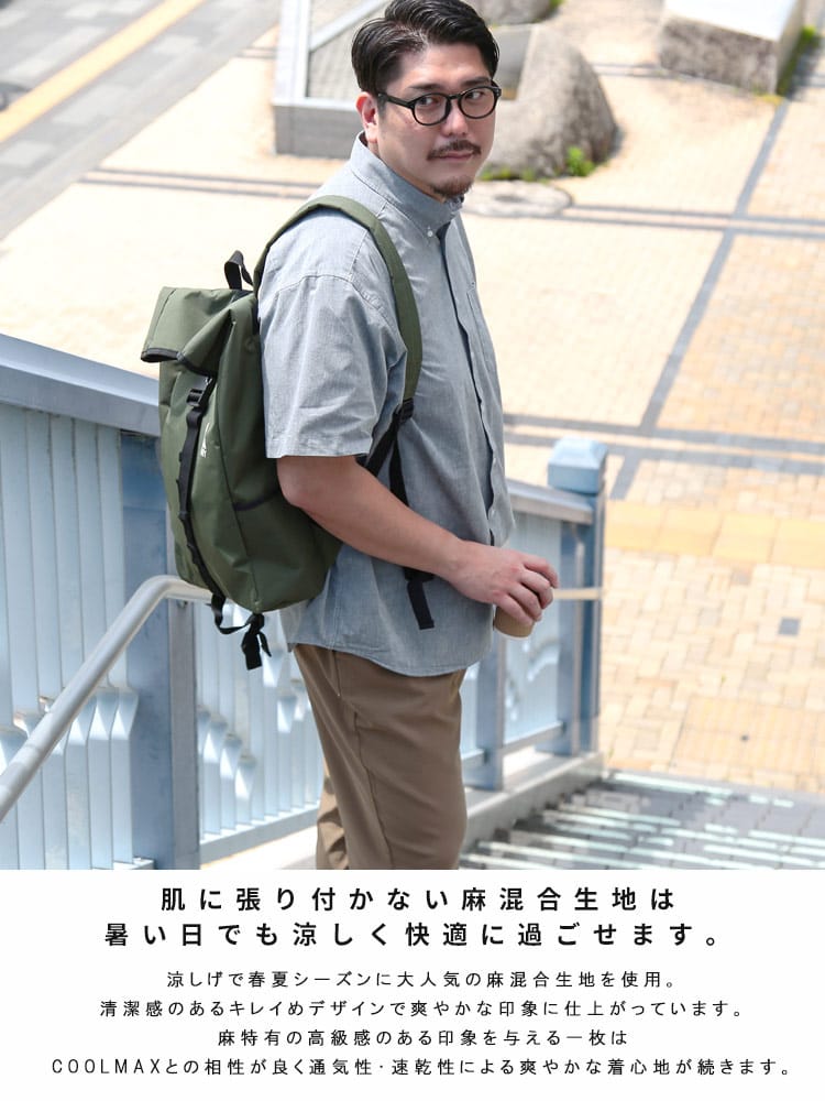 2025年春夏新作COOLMAX 半袖シャツ暑い季節に最適なクールビズスタイルを追求する方にぴったりなアイテムです。COOLMAX素材とリネンを組み合わせたこのシャツは、快適さと機能性を兼ね備えています。COOLMAX素材は、優れた吸水速乾性を持ち、汗をかいてもすぐに乾くので、常にサラリとした着心地を提供します。一方、リネン混の生地は、自然な通気性を確保し、爽やかさをキープ。また、リネン特有のシャリ感が涼しげで、見た目にも涼しさをプラスします。クラシックなボタンダウンスタイルが、カジュアルからビジネスカジュアルまで幅広いシーンで活躍。更に短すぎず長すぎない肘丈のデザインは、二の腕を程よくカバーし、すっきりとしたシルエットを実現!シンプルなポケット付きで、スタイルにちょっとしたアクセントを加えつつ、実用性も兼ね備えています。着るだけで上質な印象を与え、さまざまなパンツと相性が良いのでこの夏ヘビロテ間違いなしです!