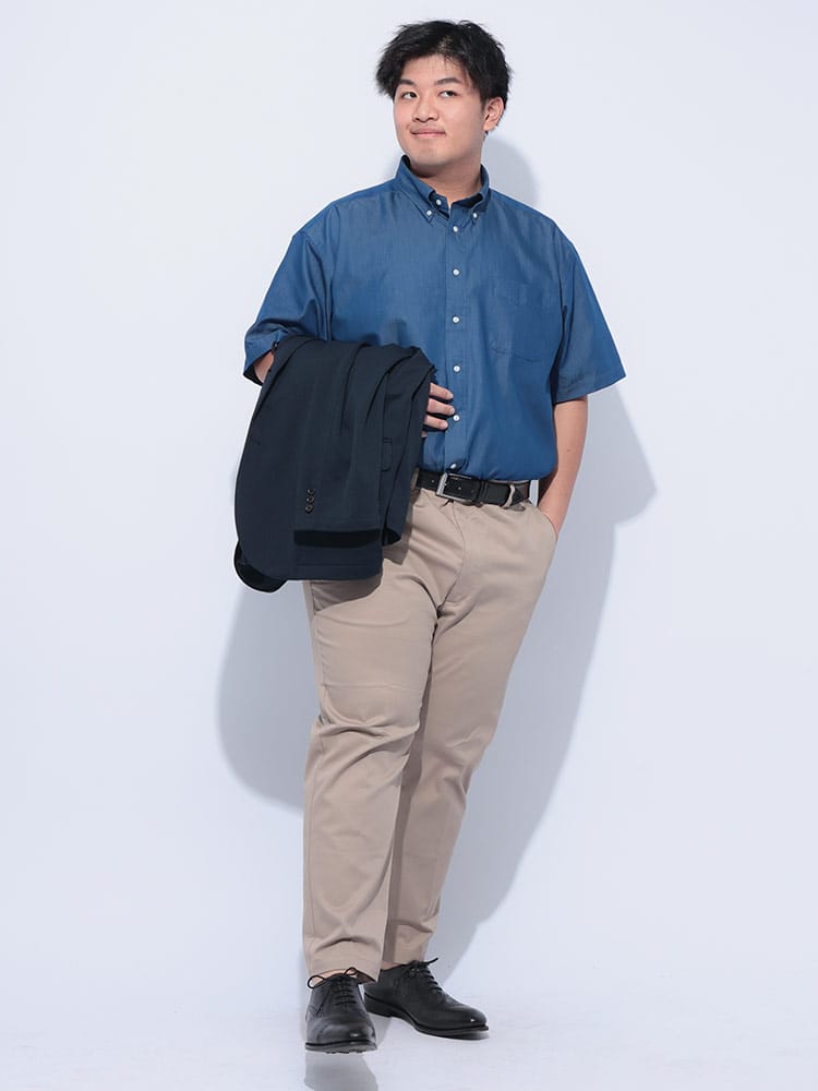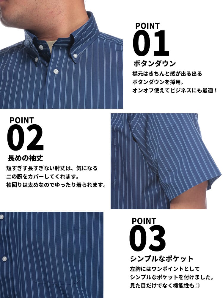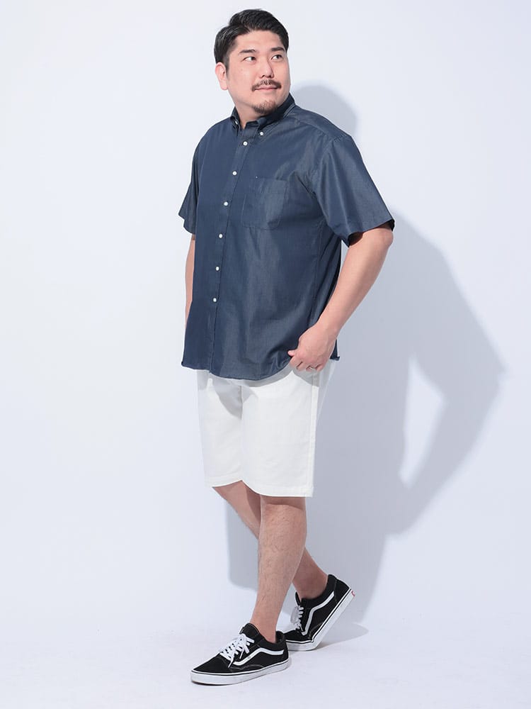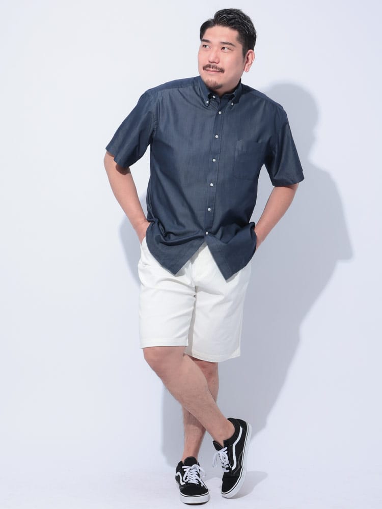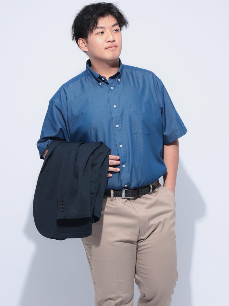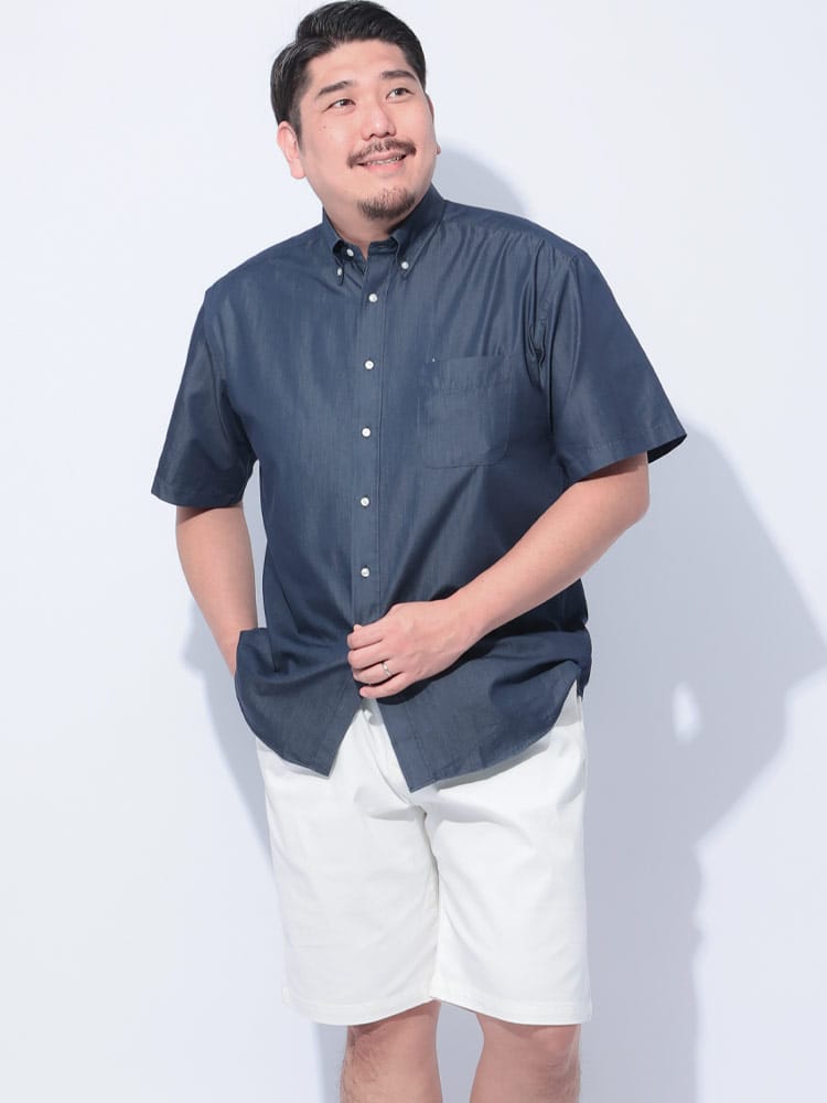 2025年春夏新作COOLMAX 半袖シャツ暑い季節に最適なクールビズスタイルを追求する方にぴったりなアイテムです。COOLMAX素材で快適さと機能性を兼ね備えています。COOLMAX素材は、優れた吸水速乾性を持ち、汗をかいてもすぐに乾くので、常にサラリとした着心地を提供します。インディゴ染めのような風合いでがとってもお洒落で、実際に染めてはいないので色落ちの心配がありません。クラシックなボタンダウンスタイルが、カジュアルからビジネスカジュアルまで幅広いシーンで活躍。更に短すぎず長すぎない肘丈のデザインは、二の腕を程よくカバーし、すっきりとしたシルエットを実現!シンプルなポケット付きで、スタイルにちょっとしたアクセントを加えつつ、実用性も兼ね備えています。着るだけで上質な印象を与え、さまざまなパンツと相性が良いのでこの夏ヘビロテ間違いなしです!
