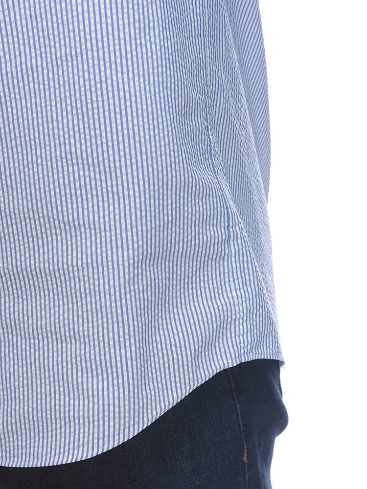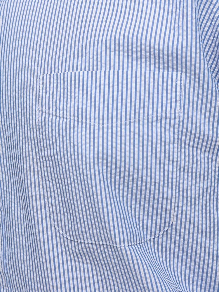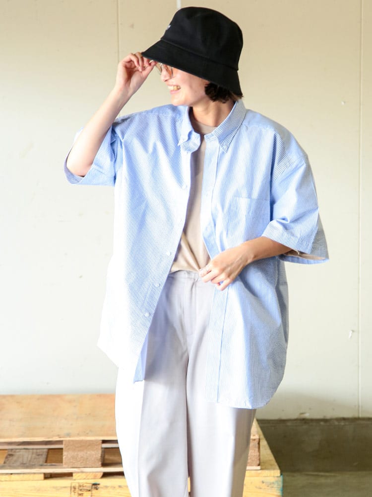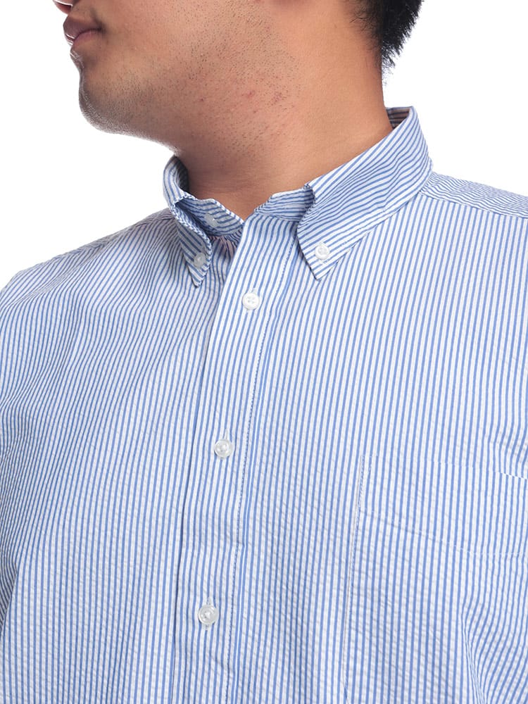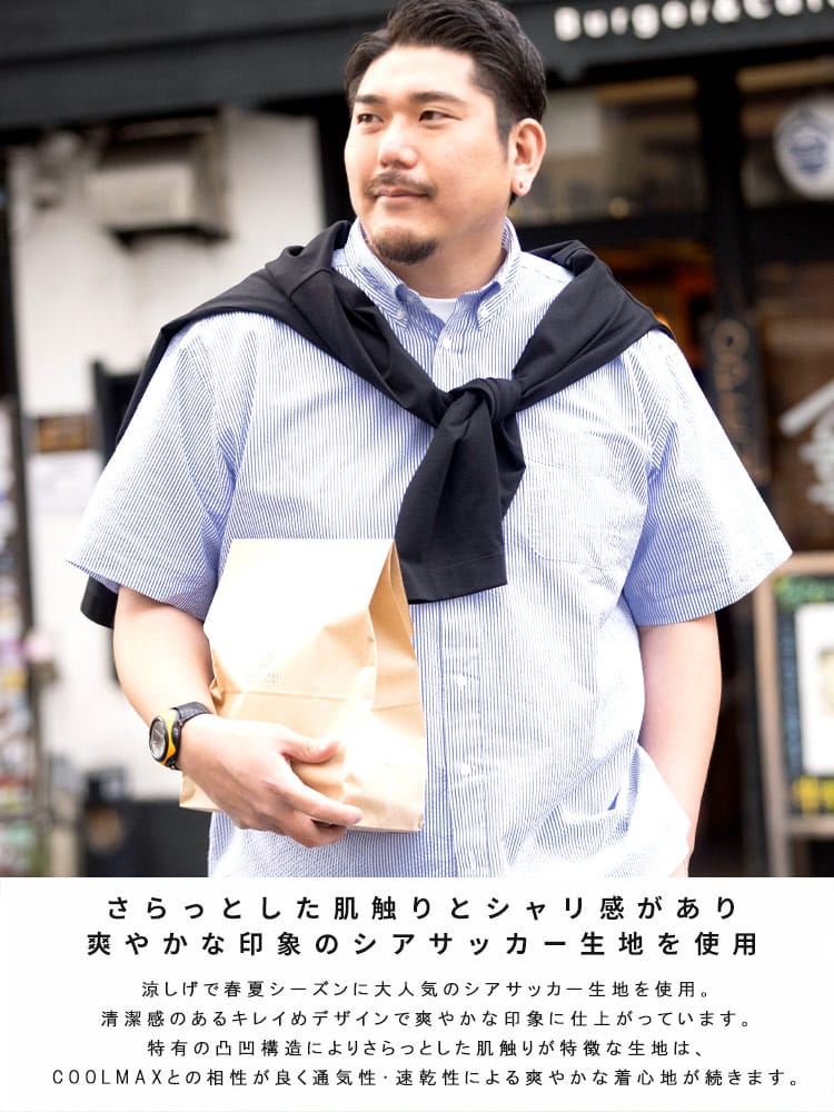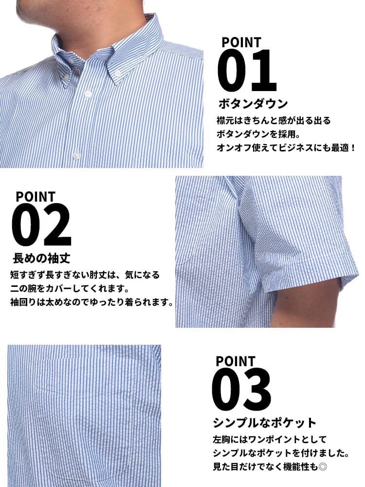 2025年春夏新作COOLMAX 半袖シャツ暑い季節に最適なクールビズスタイルを追求する方にぴったりなアイテムです。COOLMAX素材とシアサッカー生地を組み合わせたこのシャツは、快適さと機能性を兼ね備えています。COOLMAX素材は、優れた吸水速乾性を持ち、汗をかいてもすぐに乾くので、常にサラリとした着心地を提供します。サッカー生地ならではの凹凸感で、肌触りもサラッとして肌にはりつきにくいのもポイント!クラシックなボタンダウンスタイルが、カジュアルからビジネスカジュアルまで幅広いシーンで活躍。更に短すぎず長すぎない肘丈のデザインは、二の腕を程よくカバーし、すっきりとしたシルエットを実現!シンプルなポケット付きで、スタイルにちょっとしたアクセントを加えつつ、実用性も兼ね備えています。着るだけで上質な印象を与え、さまざまなパンツと相性が良いのでこの夏ヘビロテ間違いなしです!