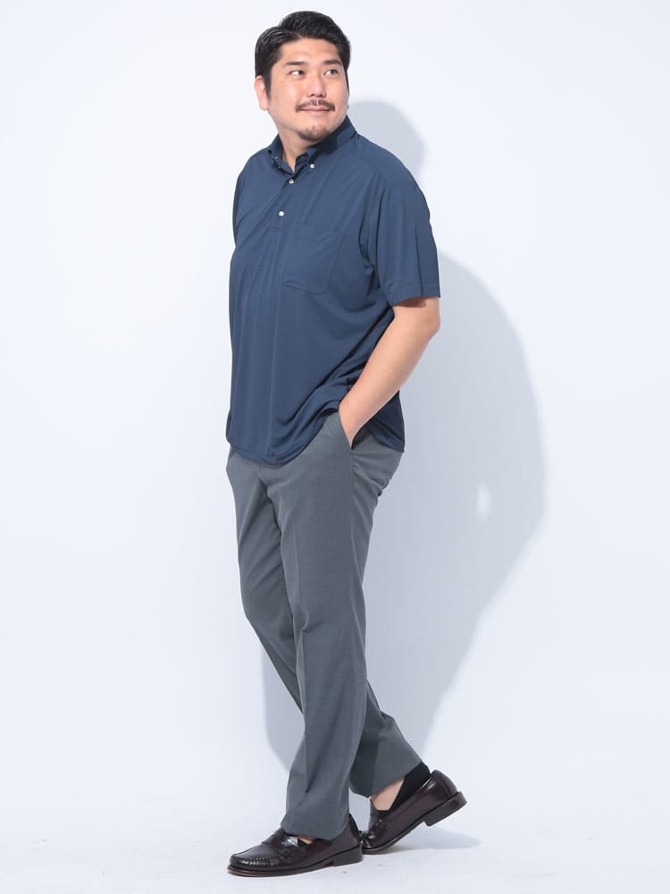 クールビズの新定番!SAKAZENの「ASERUNA」ドライメッシュプルオーバーで、快適ビジネススタイルを。「SAKAZEN ASERUNA リセット ドライメッシュ ボタンダウン 半袖 プルオーバーシャツ」は、夏のビジネスシーンを快適にする、高機能プルオーバーシャツです。ドライメッシュ素材を使用し、通気性、速乾性に優れ、汗をかいてもサラサラとした着心地をキープ。ストレッチ性も抜群で、動きやすく快適な着用感を提供します。ボタンダウンデザインは、きちんと感を演出しながらも、プルオーバータイプでポロシャツのようなリラックス感もプラス。外側ポケット付きで、機能性も充実。アイロンいらずでお手入れも簡単。3Lから6Lまでの大きいサイズ展開で、幅広い体型の方に対応します。