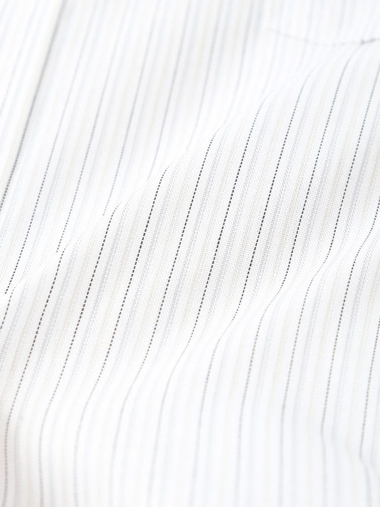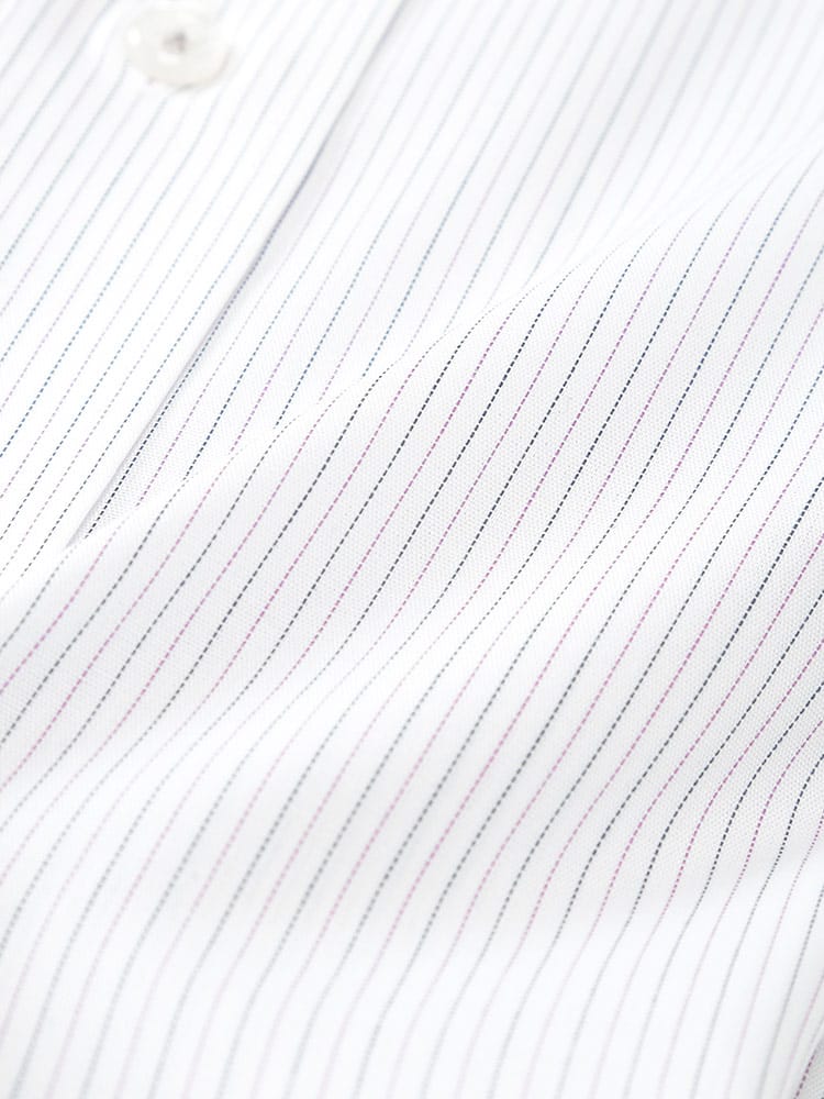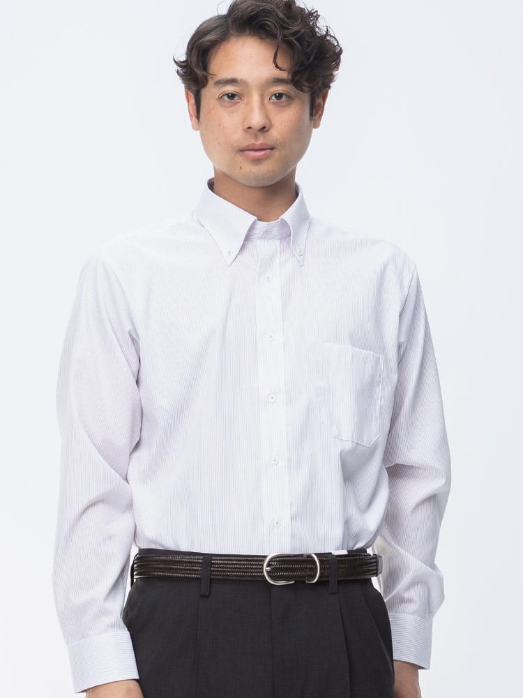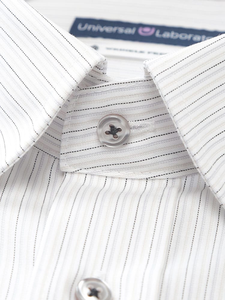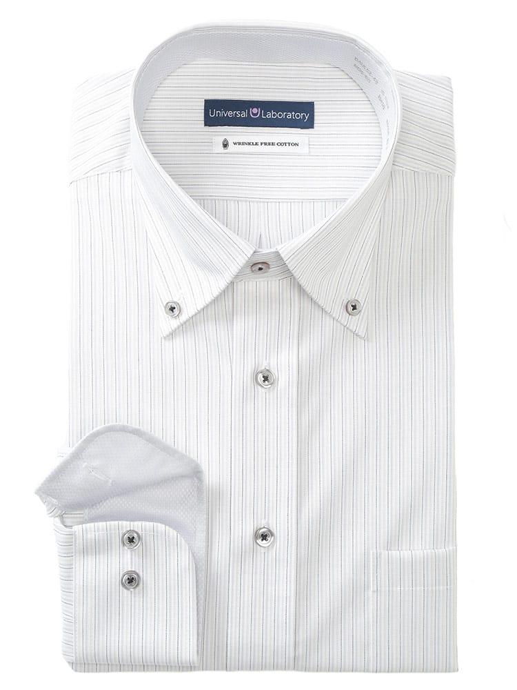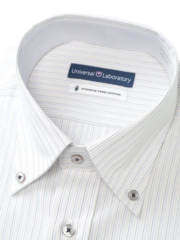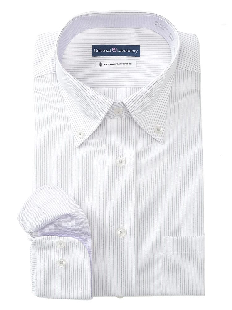 「着心地の良さ」と「清潔感」を両立させた、ユニバーサルラボラトリーの綿100%ワイシャツ。折柄とストライプの洗練されたデザインは、ビジネスシーンに上品さをプラス。ノーアイロン加工で忙しい朝も安心。綿本来の自然な肌触りは、一日を通して快適な着心地を提供します。ボタンダウンカラーは、カジュアルすぎず、かといって堅苦しくない絶妙なバランス。外ポケットは、さりげなくスマートな印象を与えます。丁寧な縫製と美しいシルエットは、普遍的なデザインでありながら、着る人を際立たせる一着。「着る人に寄り添う」というブランドコンセプトが光る、普遍的なデザインと上質な素材感が魅力です。毎日をスマートに過ごしたいビジネスマンに、自信を持っておすすめできる一品です。