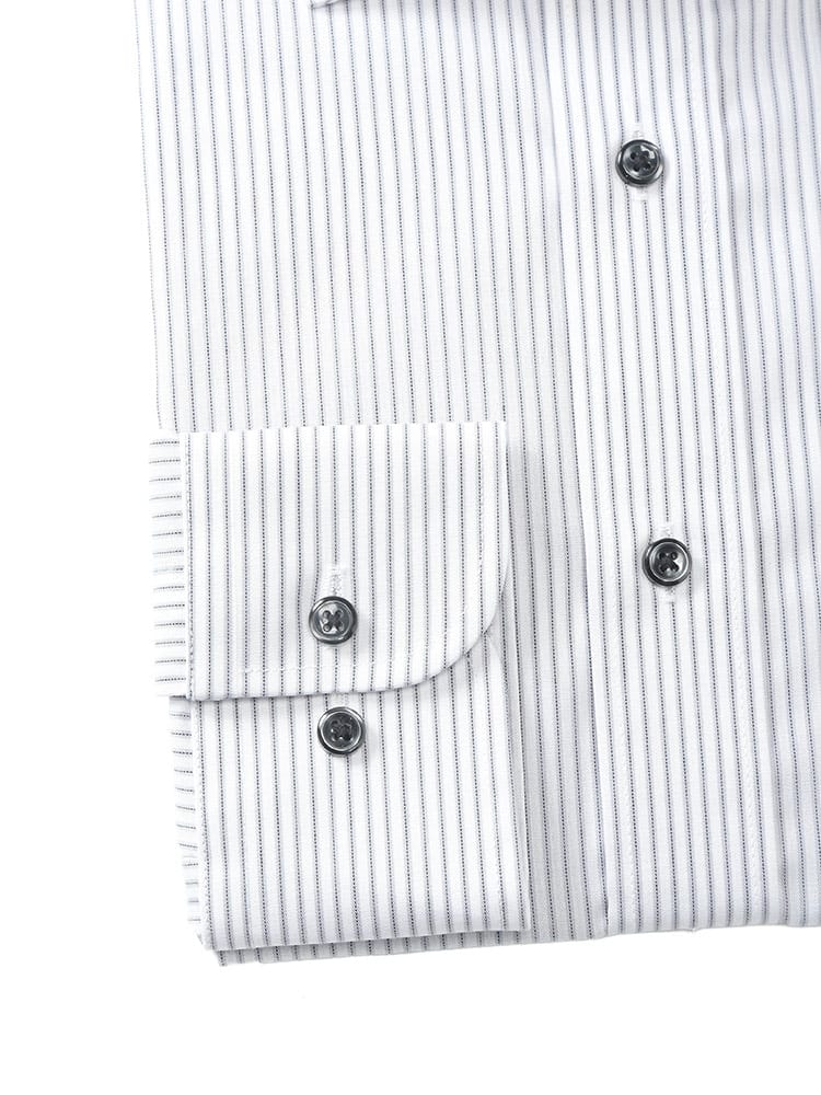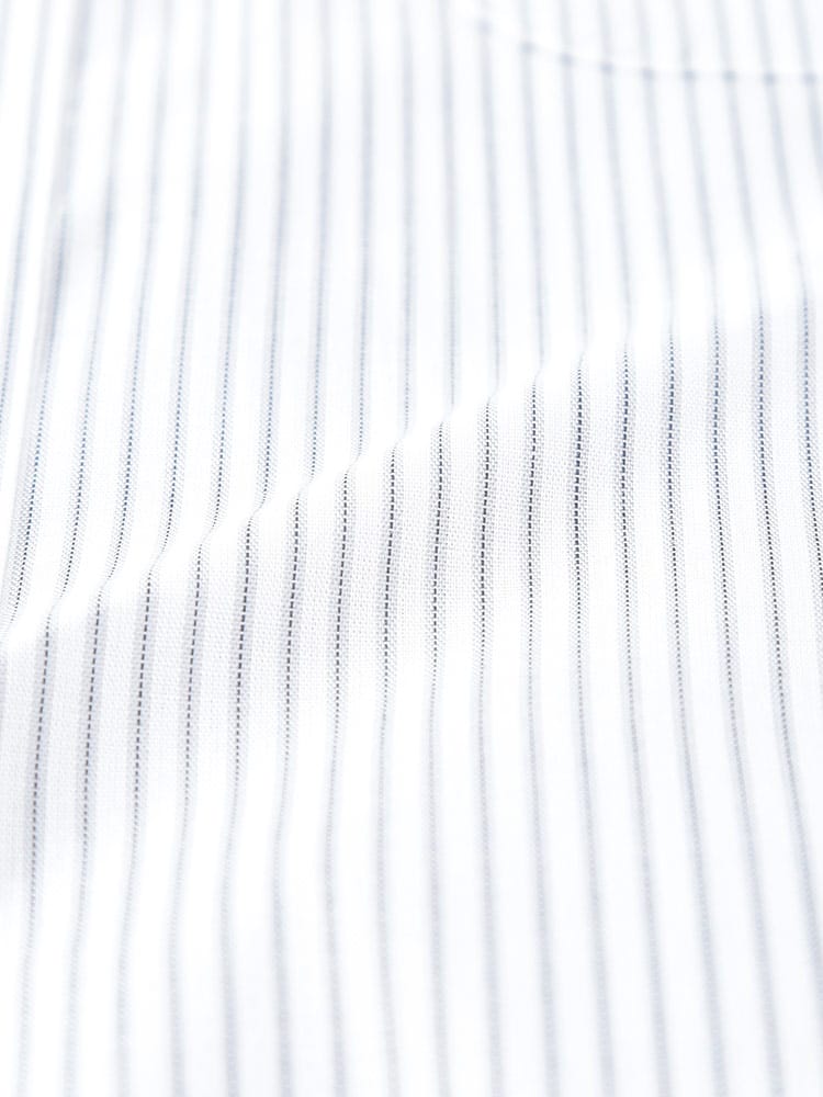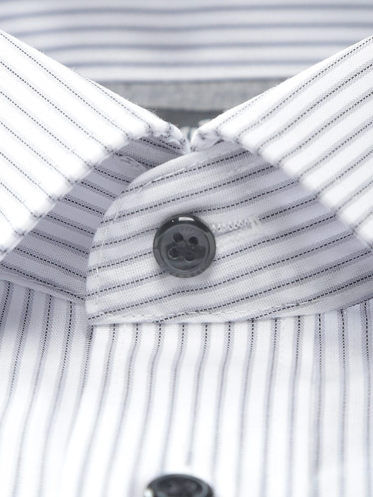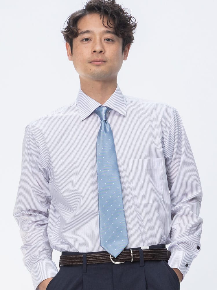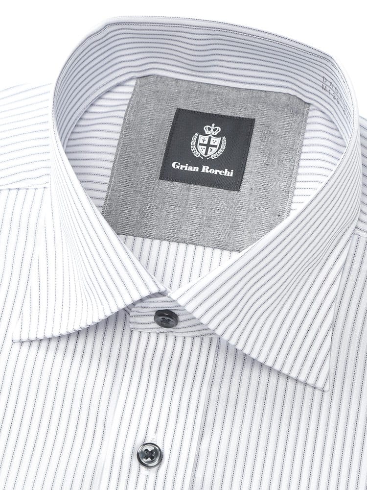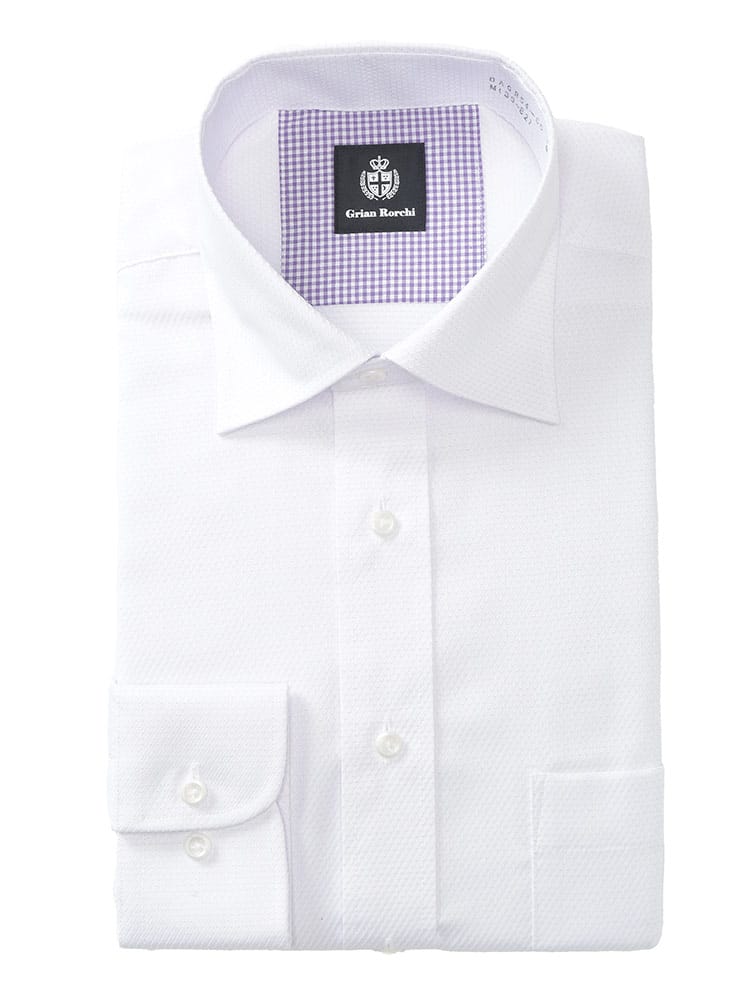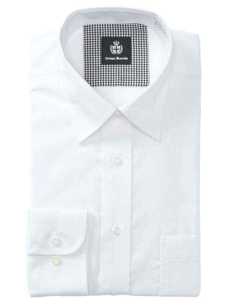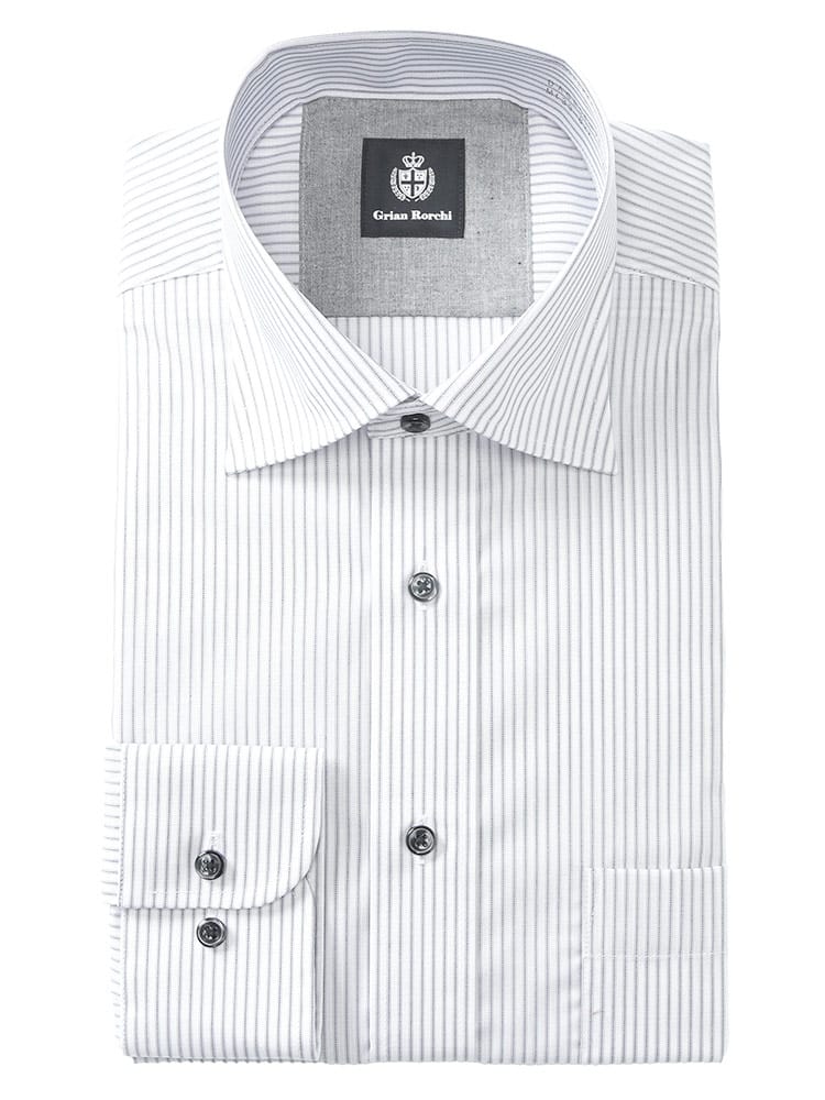 Grian Rorchiの形態安定ワイシャツは、ビジネスマンのワードローブに不可欠な一着。折柄とストライプの洗練されたデザインは、ビジネスシーンに上品さをプラス。ワイドカラーが顔周りをすっきり見せ、清潔感のある印象を与えます。ポリエステル65%、綿35%の混紡素材は、形態安定性に優れ、忙しい朝もアイロンをかける手間を省きます。綿が持つ自然な肌触りは、一日を通して快適な着心地を約束。また、形態安定加工により、洗濯後のシワを気にせず、いつでも清潔な状態を保てます。外ポケットは、スマートフォンの収納など、実用性も抜群。ベーシックなデザインながら、細部までこだわった作りが、ワンランク上のビジネススタイルを演出します。