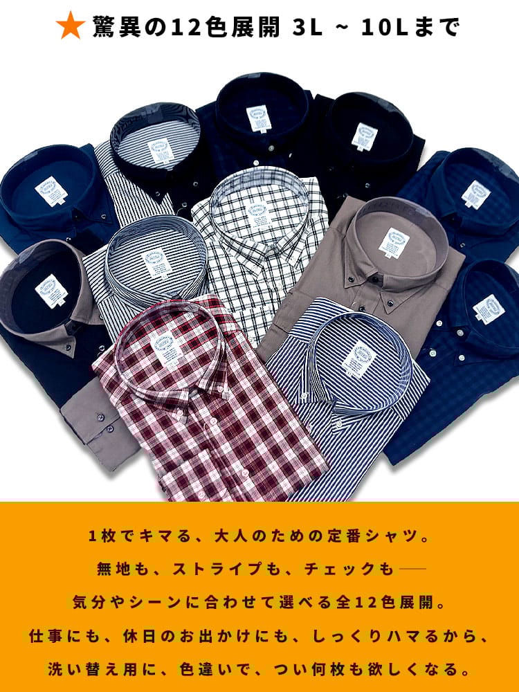大人のワードローブに欠かせない、B&T CLUBの長袖シャツが登場! 通常のストレッチ素材と違い、綿100%の素材で圧縮加工をしている為、綿100%の程よい厚みとソフトな風合いはそのままで、自然なストレッチ性があります。今までのツイルシャツに比べ着心地の良さもUPしています。快適な着心地が一日中続きます。定番の無地から、こなれ感のあるチェックやストライプ、個性的な柄物まで、豊富なカラーバリエーションをご用意。ビジネスシーンはもちろん、カジュアルな休日スタイルにも幅広く対応します。左胸には外側ポケットが1つ付いており、機能性も兼ね備えています。大きいサイズの展開も魅力。自分らしい一枚を見つけて、ワンランク上の着こなしをお楽しみください。
