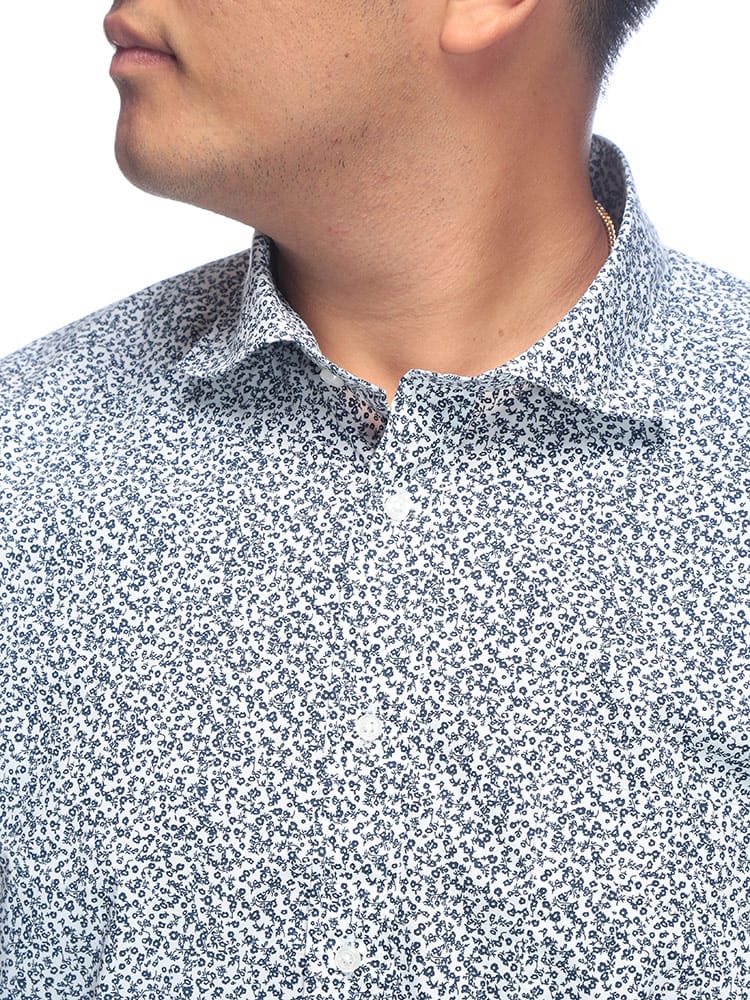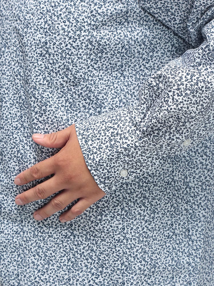 B&T CLUBの総柄プリントストレッチカッタウェイ長袖シャツは、遊び心あるデザインと快適な着心地が魅力です。個性を引き立てる華やかな総柄は、一枚で着ても、ジャケットのインナーとしてもスタイリングの主役になります。ストレッチ素材なので動きやすく、長時間の着用でもストレスを感じません。シャープなカッタウェイカラーが顔周りをすっきりと見せ、ビジネスシーンから休日のカジュアルスタイルまで、幅広いコーディネートで活躍します。おしゃれを楽しみながら快適さも手に入れたい方におすすめの一枚です。