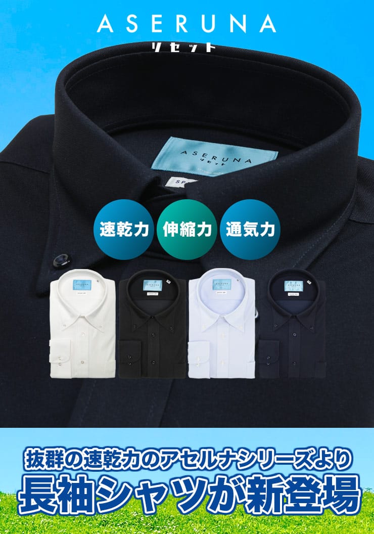 ASERUNA(アセルナ)の長袖ワイシャツは、忙しいビジネスマンを支える高機能な一着です。優れた通気性と速乾性を備え、汗をかいてもベタつかず、一日中さらりと快適な着心地をキープ。ストレッチ素材により動きやすさも抜群です。さらに、洗濯して干すだけでシワが伸びるノーアイロン仕様のため、お手入れも非常に簡単。ボタンダウンの襟元が、ノーネクタイでも清潔感のあるスマートな印象を演出します。