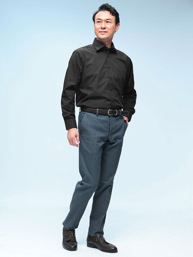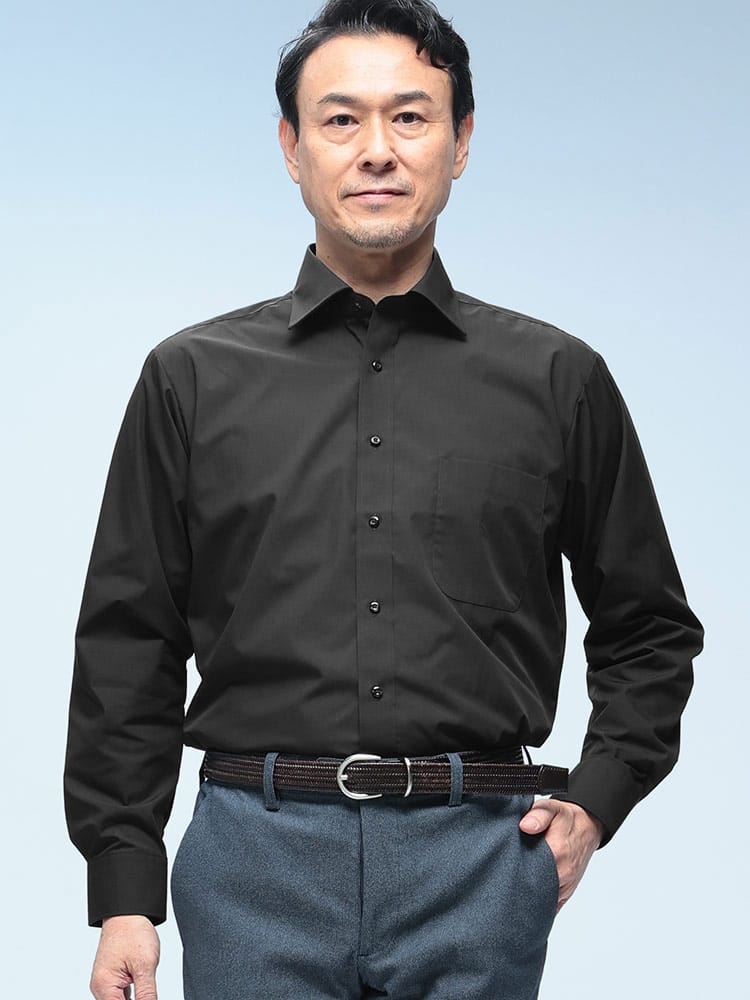SARTORIA DEL GROSSOの黒無地セミワイドカラー長袖ワイシャツは、ビジネスシーンに欠かせないBASICBODY仕様。すっきりとしたシルエットと汎用性の高いデザインで、どんなスーツやジャケットにも合わせやすい一着です。洗練されたスタイルを演出する、定番でありながらモダンなアイテムです。