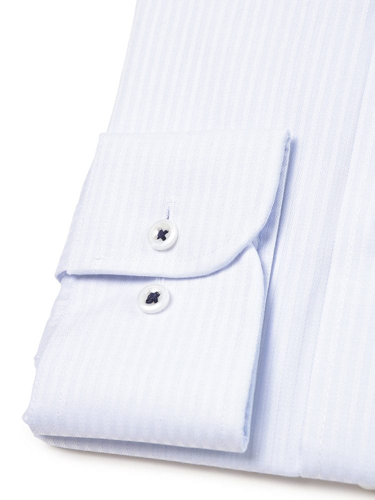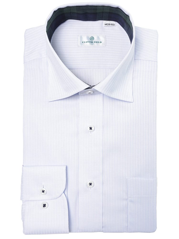 スマートな着こなしを叶える、CLOVERFIELDの長袖ワイシャツ。顔周りをすっきりと見せるワイドカラーと、細身のスリムシルエットが洗練された印象を与えます。形態安定加工によりシワになりにくく、アイロンがけの手間も軽減。いつでもパリッとした清潔感を保てます。機能性とデザイン性を両立した、忙しいビジネスマンに最適な一着です。