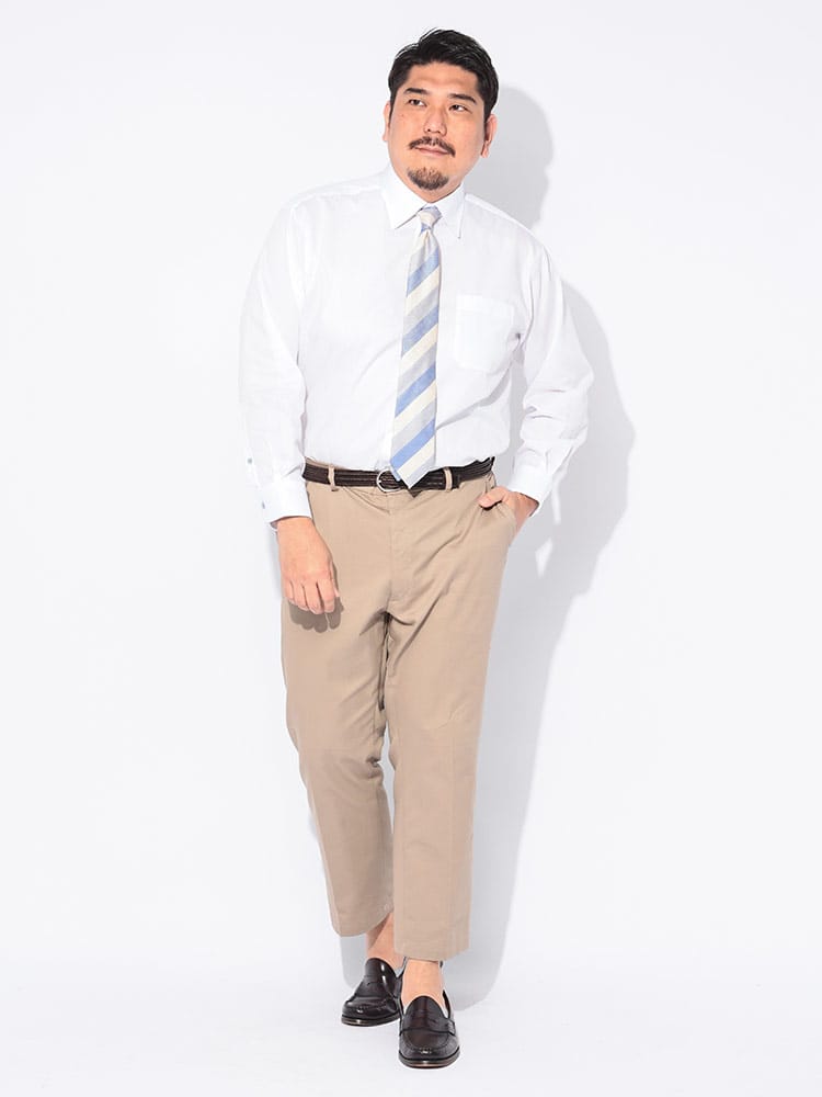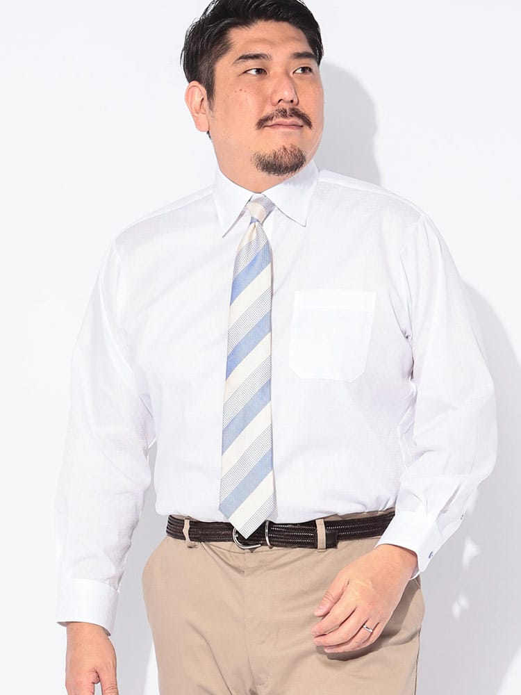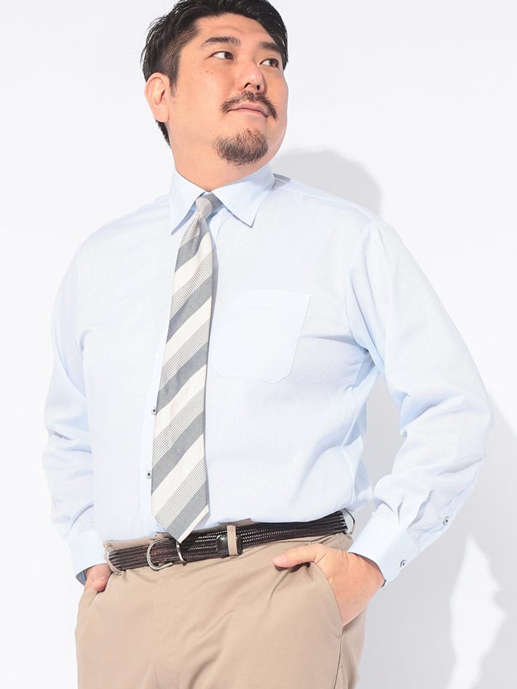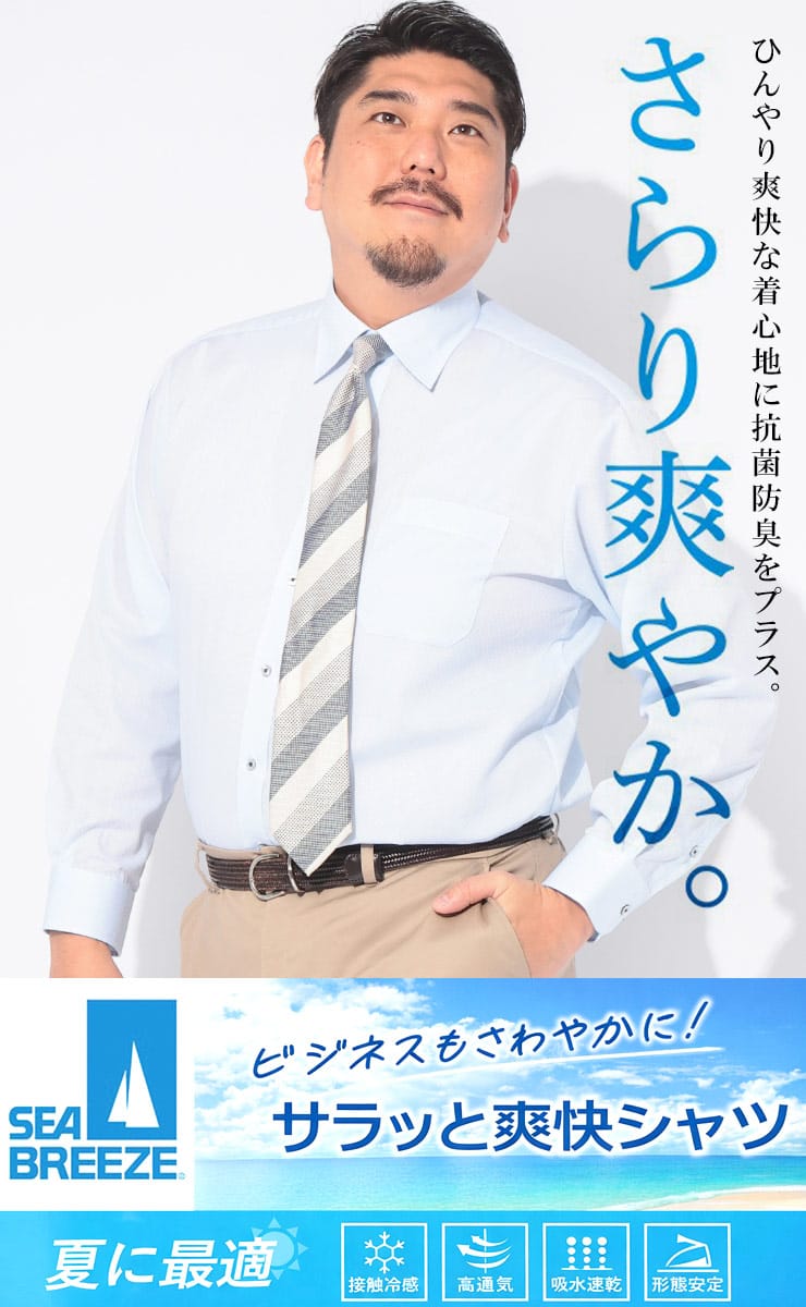 夏場のビジネスシーンを劇的に変える「SEA BREEZE」の長袖レギュラーカラーワイシャツ。大きいサイズを愛用する男性に向けた、高機能な一着です。肌に触れた瞬間にひんやりと感じる接触冷感機能と、汗を素早く吸収し拡散する吸水速乾性能により、ベタつき知らずの爽やかな着心地を長時間キープします。さらに、ムレを逃がす高通気設計が熱をこもらせず、外回りや通勤時の不快感を軽減。洗濯後のお手入れが簡単な形態安定加工を施しているため、忙しい毎日でもシワを気にせず着用できるのが魅力です。清潔感のあるレギュラーカラーは、タイドアップからノータイまで幅広く対応。機能美と利便性を両立した、夏に勝つためのビジネスYシャツです。