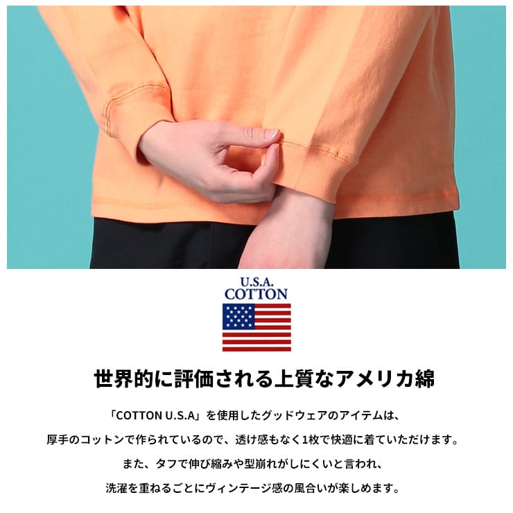 グッドウェア Tシャツ GOODWEAR USA ロンT コットン ポケット付き 無地 クルーネック 長袖 Tシャツ 2W78518 WEB限定