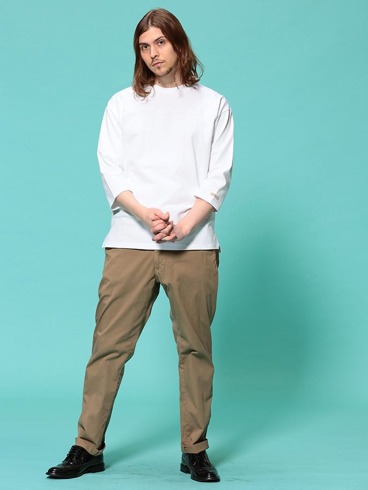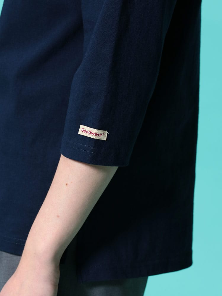 1983年にアメリカはマサチューセッツ州エセックスで誕生したGoodwear(グッドウェア)は、MADE IN USAを貫くTシャツを中心としたアパレルメーカー。こだわりのUSAコットンを使用したGoodwearの7分袖 クルーネック フットボール Tシャツ。ベーシックなデザインでどんなスタイルにも合わせていただけます。無地のデザインに切り替えがポイント。首元はベーシックなクルーネック。裾サイドにスリット入り。左袖にブランドタグ。