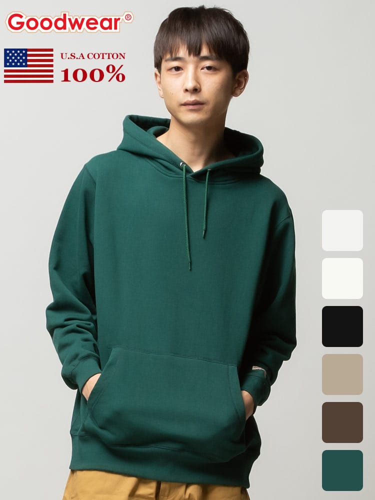 1983年にアメリカはマサチューセッツ州エセックスで誕生したGoodwear(グッドウェア)は、MADE IN USAを貫くTシャツを中心としたアパレルメーカー。こだわりのUSAコットンを使用したGoodwearのプルオーバー 長袖 パーカー。ベーシックなデザインでどんなスタイルにも合わせていただけます。レギュラーシルエット。袖、裾はリブ。左袖にブランドタグ。裏毛。