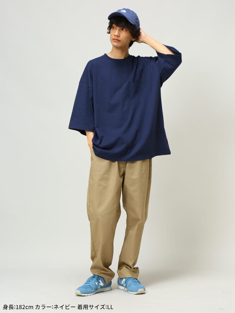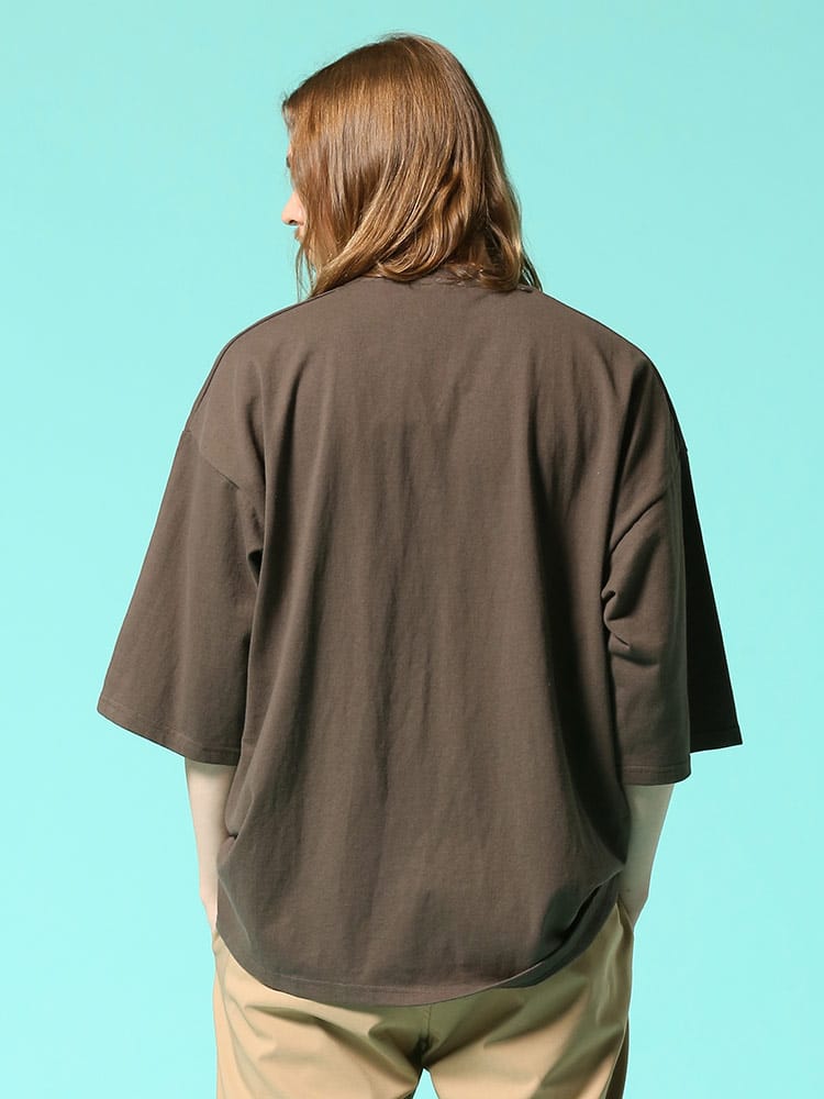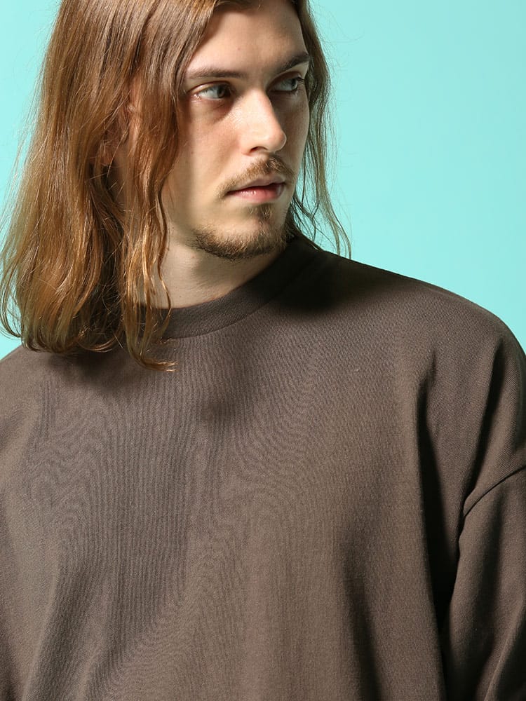 USAコットンで仕上げた無地 クルーネック SUPER BIG 半袖 Tシャツ。無地のシンプルなデザイン。スーパーBIGシルエットでボリューム感のあるアイテム。首元はベーシックなクルーネック。USAコットンを使用し、厚めでタフな生地にドライ感とコシがあるのが特徴で、洗えば洗うほどヴィンテージ感の風合いが楽しめる一枚です。