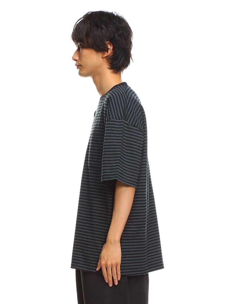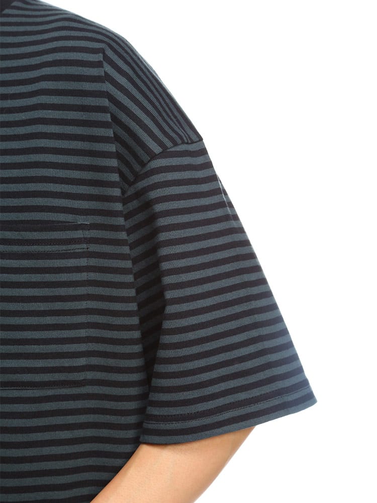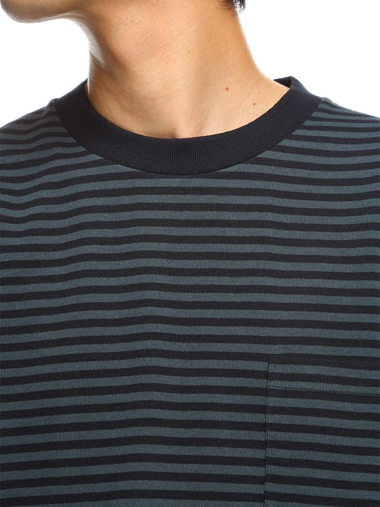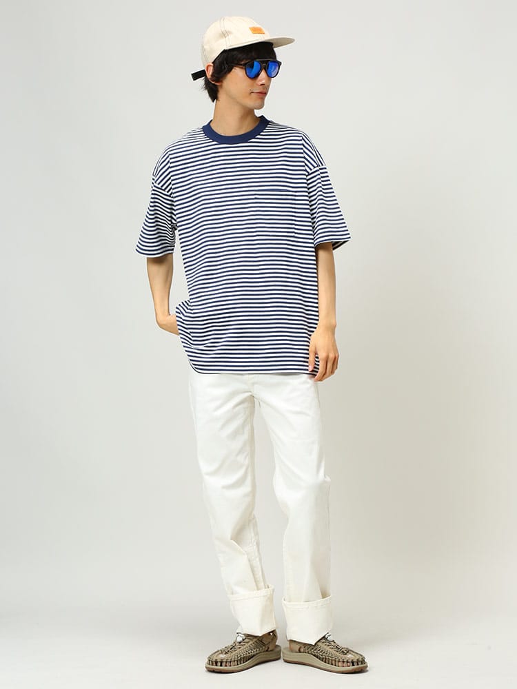 USAコットンで仕上げたポケット付き ボーダー クルーネック 半袖 Tシャツ SS BIG TEE。ボーダー柄でこなれ感のあるデザイン。左胸ポケットがポイント。首元はベーシックなクルーネック。USAコットンを使用し、厚めでタフな生地にドライ感とコシがあるのが特徴で、洗えば洗うほどヴィンテージ感の風合いが楽しめる一枚です。